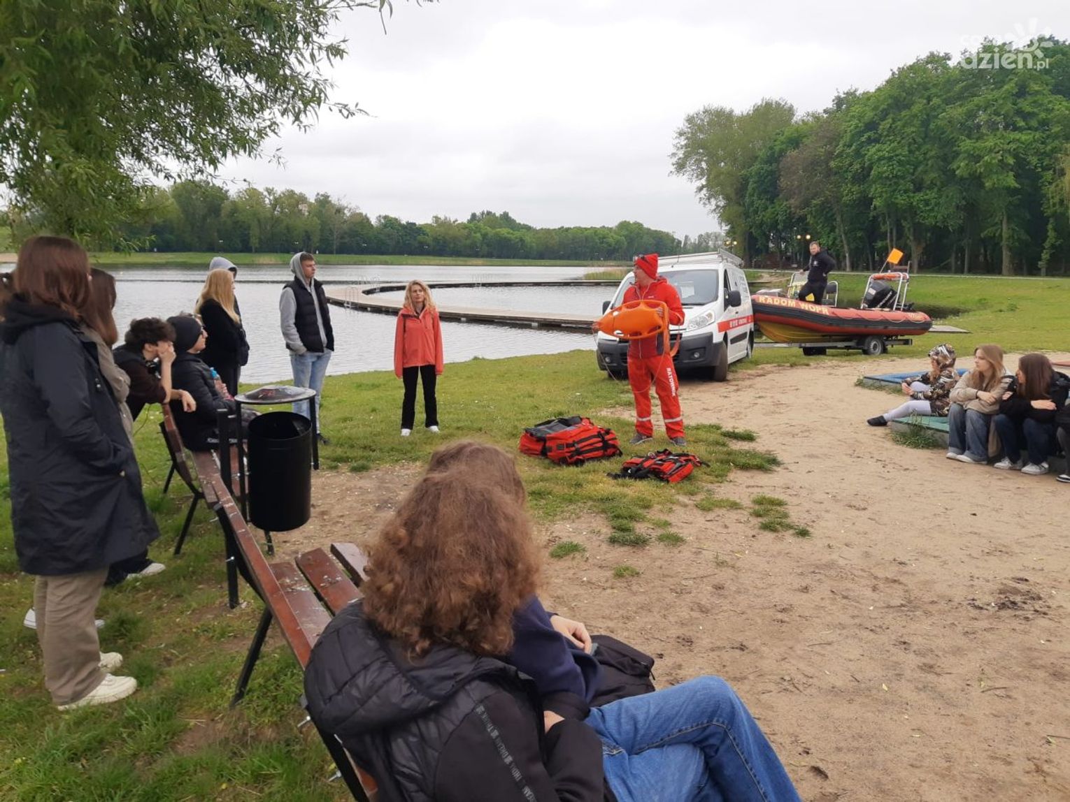 W piątek 19 maja uczniowie z X LO z oddziałami integracyjnymi im. Stanisława Konarskiego w Radomiu wraz z wychowawcami wzięli udział w niecodziennej lekcji na temat: "Bezpiecznym wypoczynek nad wodą". W zajęciach wzięło udział kilkunastu uczniów wraz z nauczycielami. Podczas zajęć omówiono zasady bezpiecznej kąpieli, podstawy pierwszej pomocy, przeprowadzono prezentacje poręcznego i specjalistycznego sprzętu ratunkowego, omówiono działalność Wodnego Ochotniczego Pogotowia Ratunkowego oraz zaprezentowano sprzęt motorowodny .