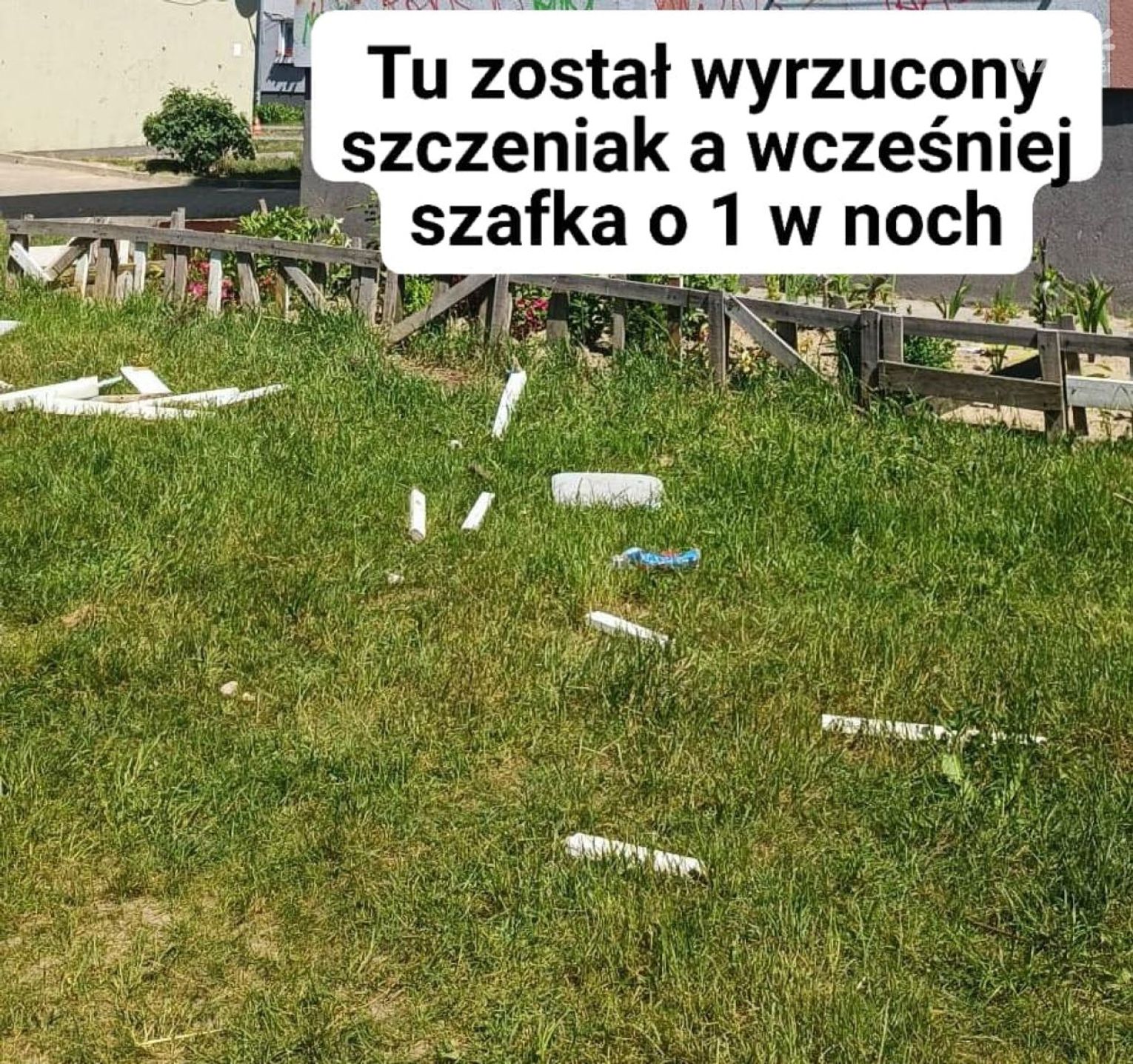 Z relacji fundacji wynika, że w libacji z 3/4 czerwca brało udział pięć osób. Najpierw ok. godz. 2 w nocy przez okno wyrzucono szafkę. Kilka godzin później na trawniku wylądował pies, którego właścicielki nie było w domu, a zwierzę uciekło.