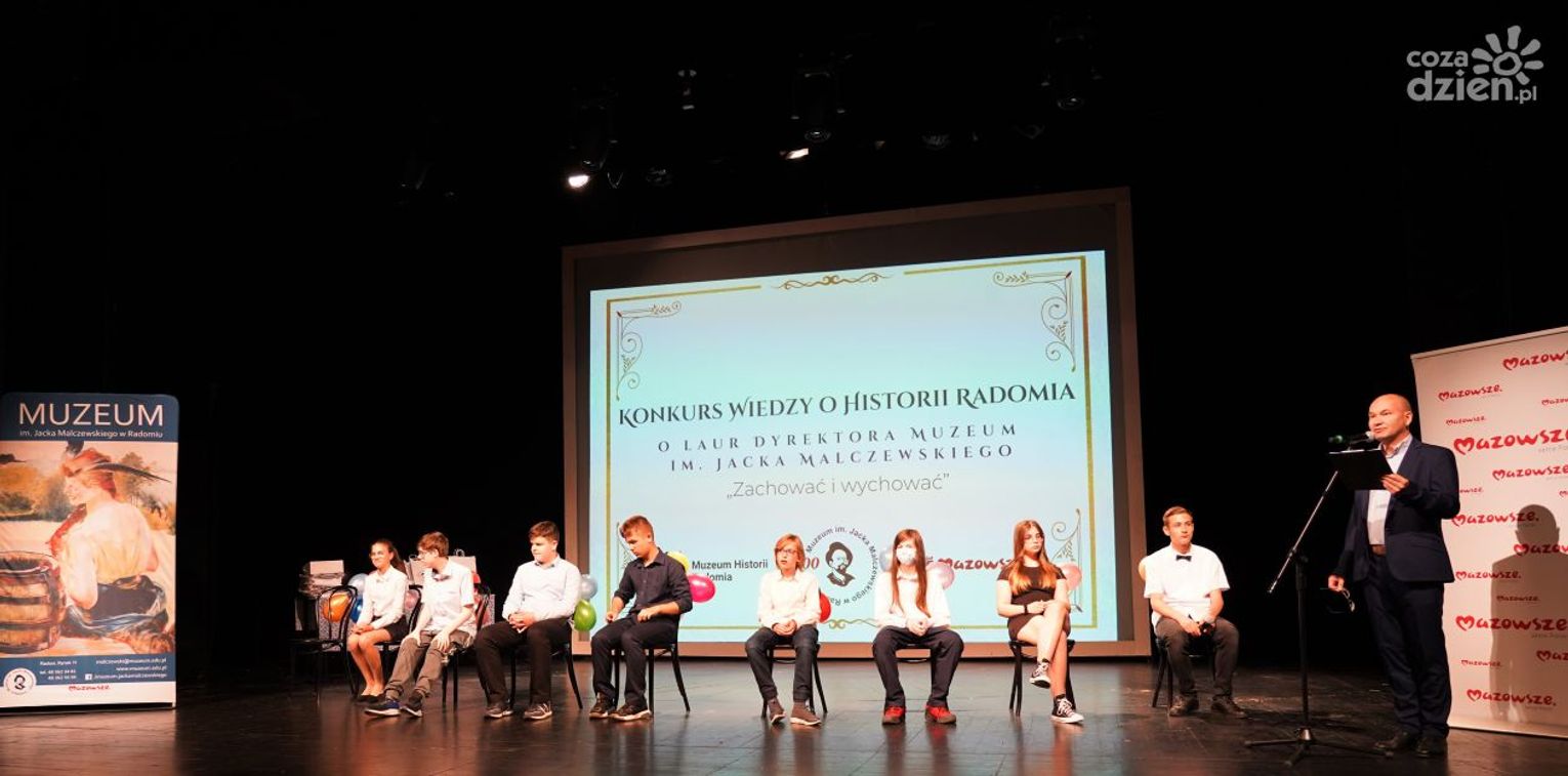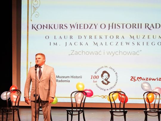 W poniedziałek, 12 czerwca na scenie Teatru Powszechnego w Radomiu odbył się finał I edycji konkursu wiedzy o historii Radomia, który został zorganizowany przez Muzeum im. Jacka Malczewskiego. Został on podzielony na dwie kategorie: szkół podstawowych oraz średnich. W konkursie wzięli udział uczniowie z 17 radomskich szkół. Rywalizacja składała się z dwóch etapów: szkolnego i międzyszkolnego, który był podzielony na dwie części: testową oraz finałową, która odbyła się w formule popularnego teleturnieju "Jeden z dziesięciu".