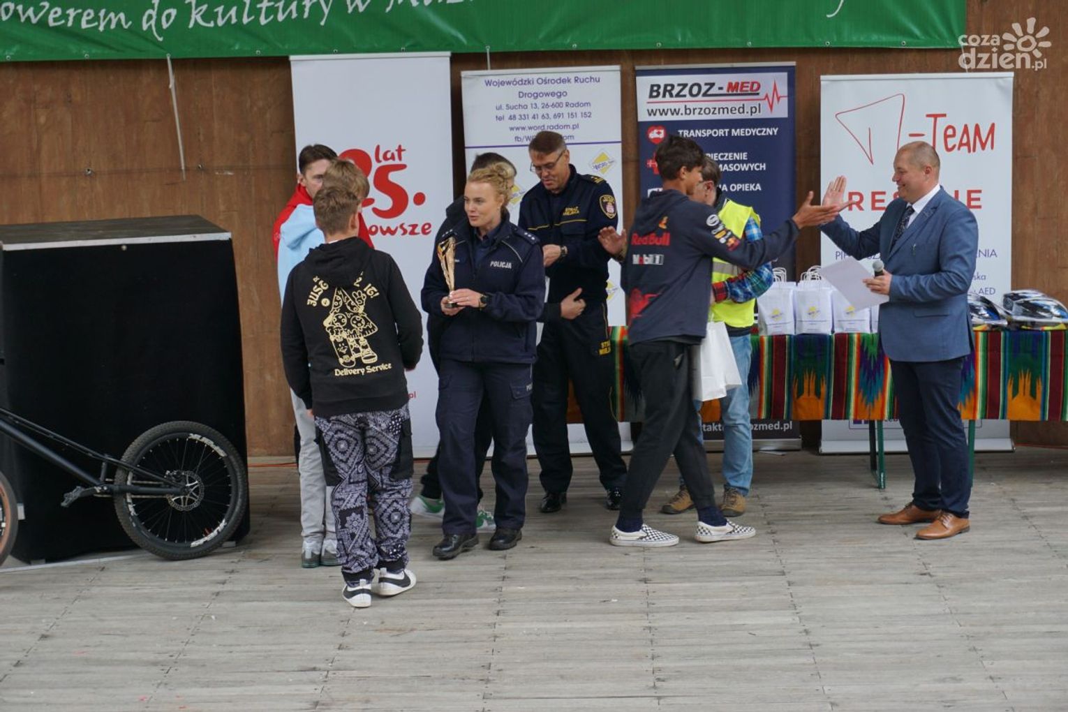 - Mamy tutaj rowerowy tor przeszkód, sprawdzana jest podstawowa wiedza o ruchu drogowym i o pierwszej pomocy - wylicza Marcin Ciężkowski, dyrektor Wojewódzkiego Ośrodka Ruchu Drogowego w Radomiu.