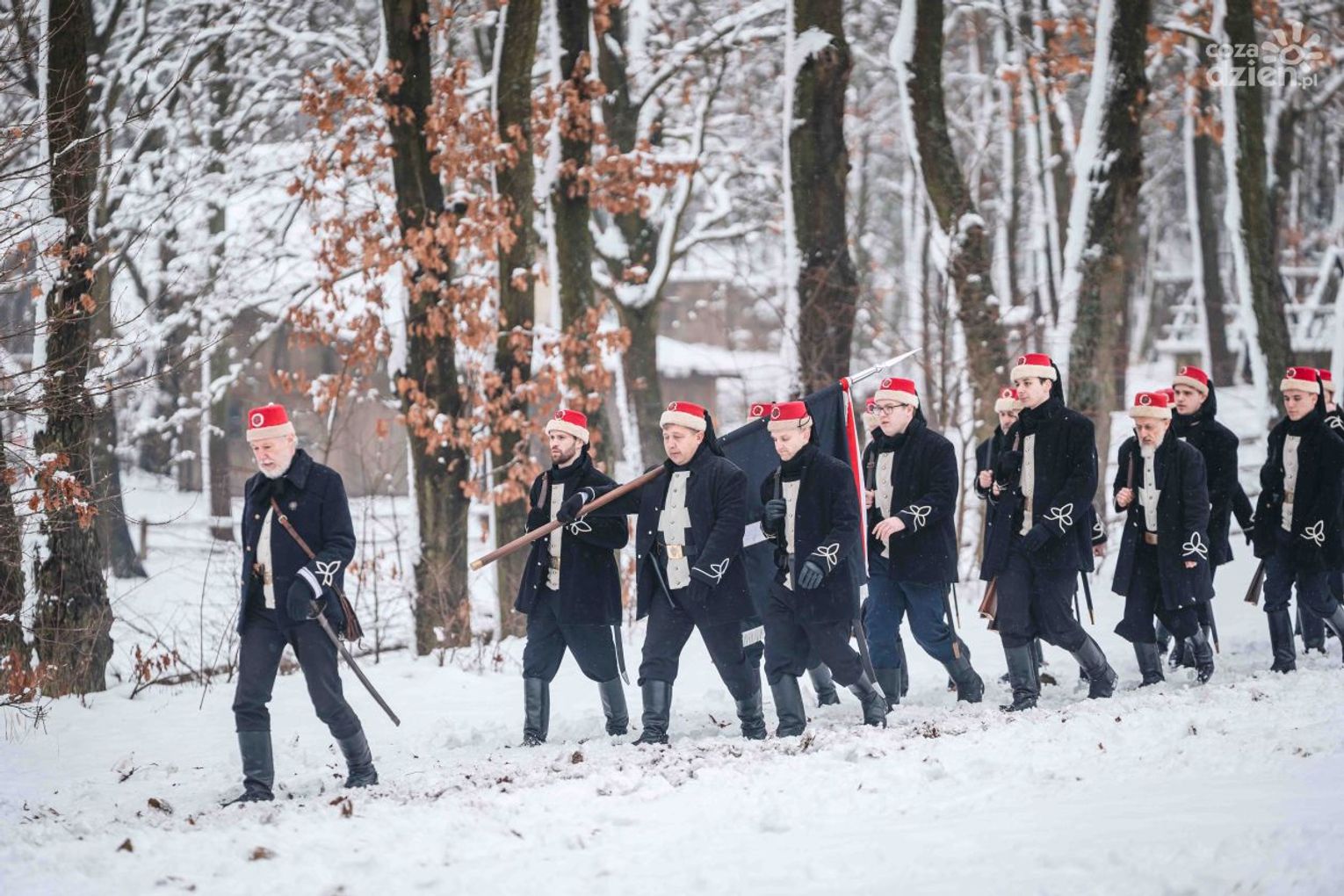 Pomimo niskiej temperatury i opadów śniegu z deszczem, rekonstrukcje na żywo oglądało ponad siedemset osób.