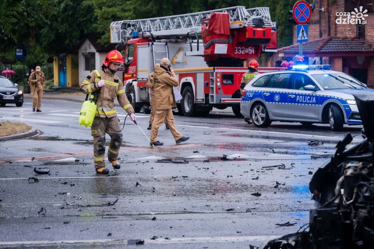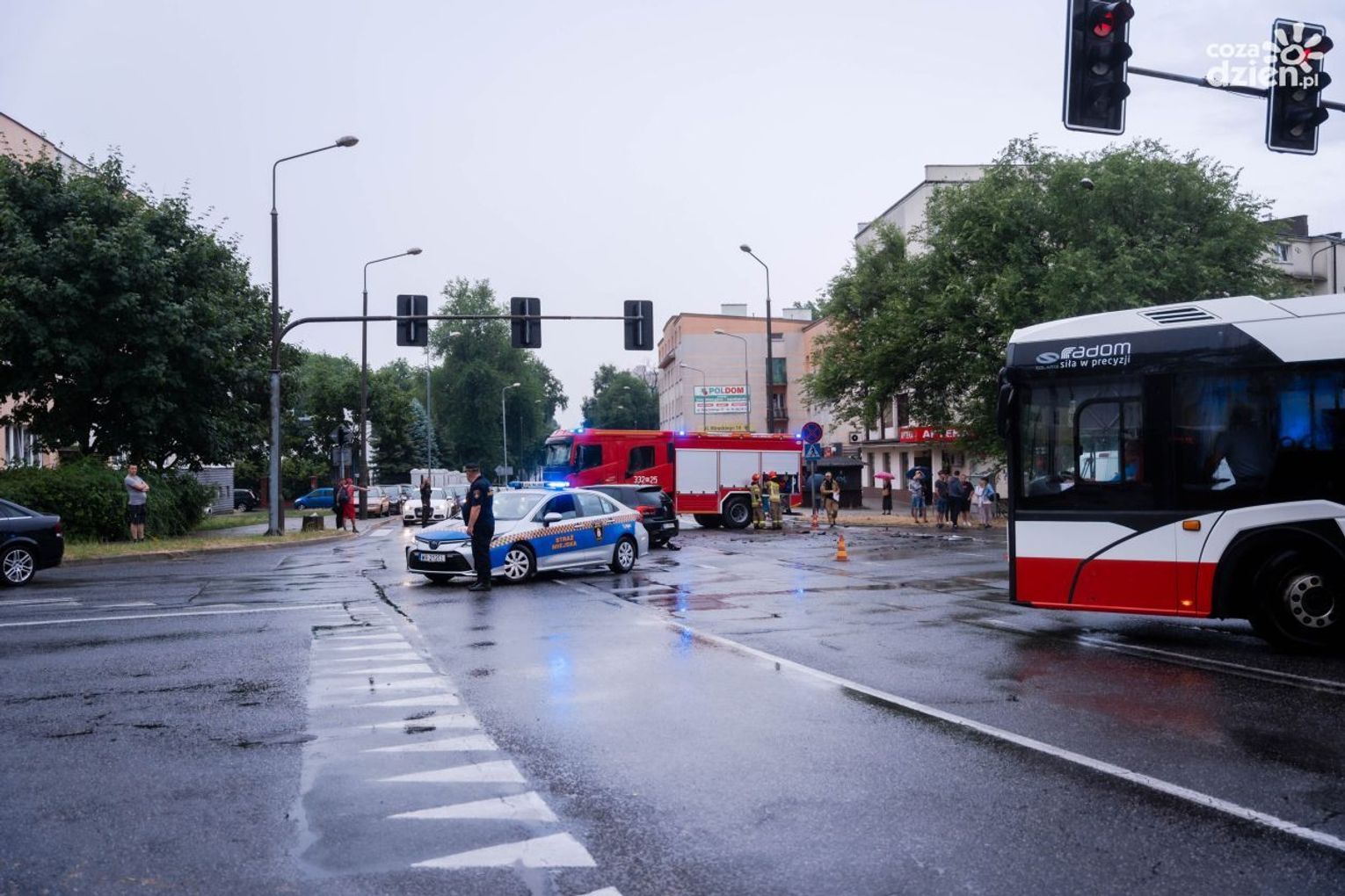 - Ze wstępnych ustaleń wynika, że jadący do zdarzenia wóz strażacki kierowany przez 37-latka wjechał na skrzyżowanie na czerwonym świetle uderzając w prawidłowo jadącego volkswagena - informuje radomska policja. - Pasażerka volkswagena została przewieziona do szpitala.