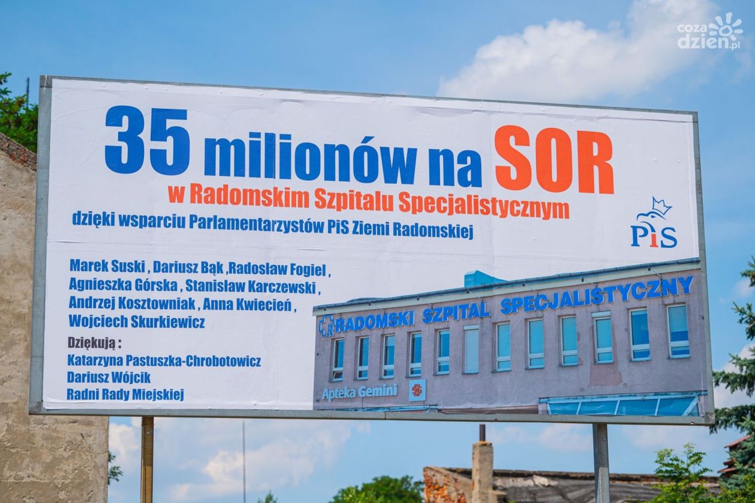 - Bilboardy to forma podziękowania parlamentarzystom Prawa i Sprawiedliwości za pieniądze przekazane na radomski SOR. Ten rząd pomaga Polakom, dzięki lobby naszym parlamentarzystów pomaga też naszemu miastu. Nie chcemy, żeby politycy (rządu Platformy Obywatelskiej - przyp. red.), którzy w przyszłości rządzili naszym krajem znów wrócili na stanowiska. Sfinansowaliśmy je wspólnie z Katarzyną Pastuszką-Chrobotowicz z prywatnych środków - mówił Dariusz Wójcik, radny Prawa i Sprawiedliwości w sobotniej "Polityce na śniadanie".