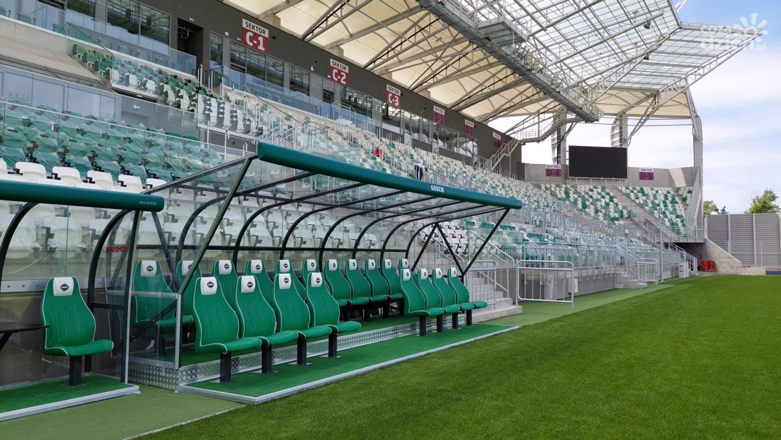 Jedną z pierwszych rzeczy, które rzucają się w oczy po wejściu na murawę, są ławki rezerwowych. Faktycznie - estetyczne, a siedzenia wygodne. Problem w tym, że zasłaniają widok dla kilku pierwszych rzędów trybuny VIP. Okazuje się, że ma to być zmienione.