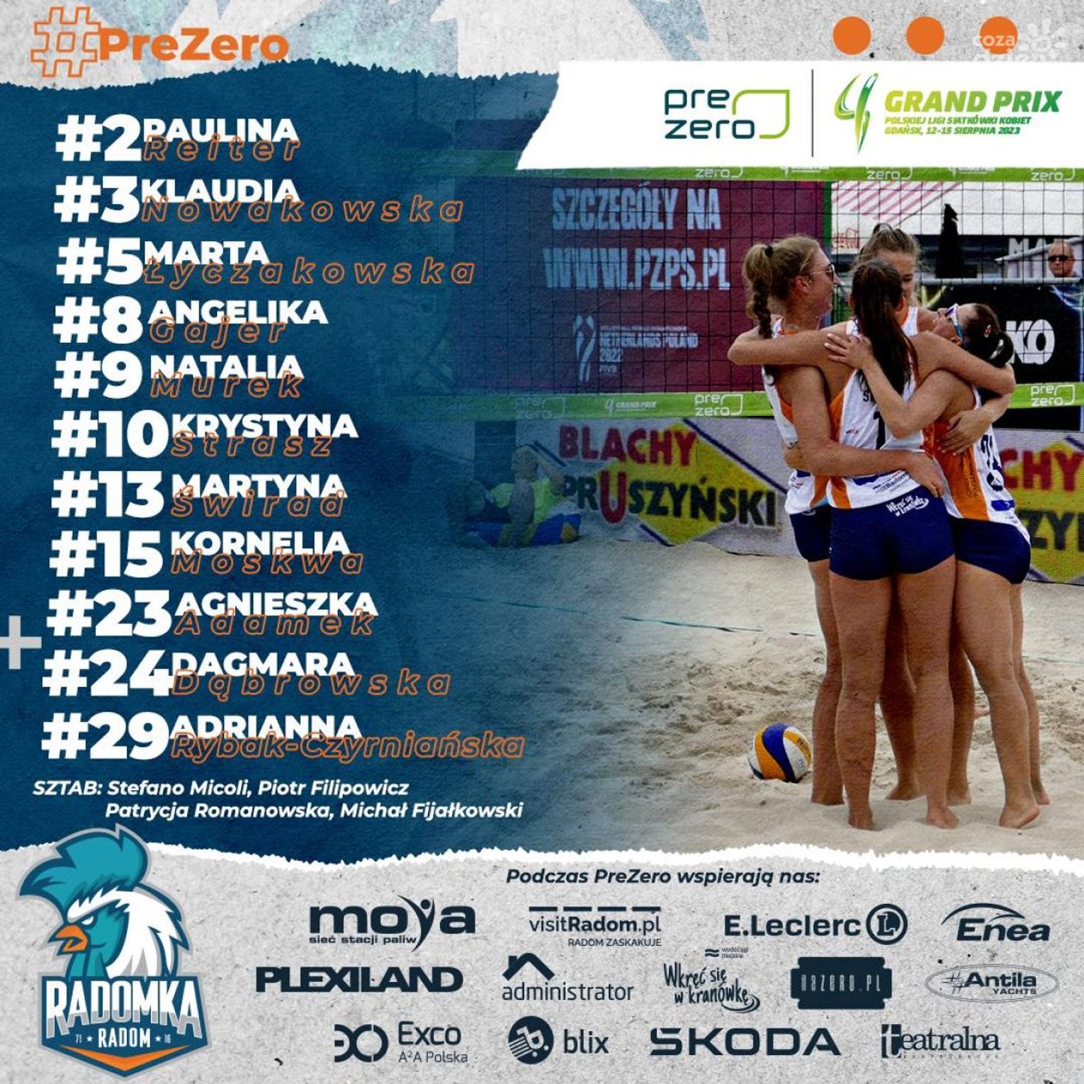 Radomka w Gdańsku wystąpi w składzie: Paulina Reiter, Klaudia Nowakowska, Marta Łyczakowska, Angelika Gajer, Natalia Murek, Krystyna Strasz, Martyna Świrad, Kornelia Moskwa, Agnieszka Adamek, Dagmara Dąbrowska i Adrianna Rybak-Czyrniańska.