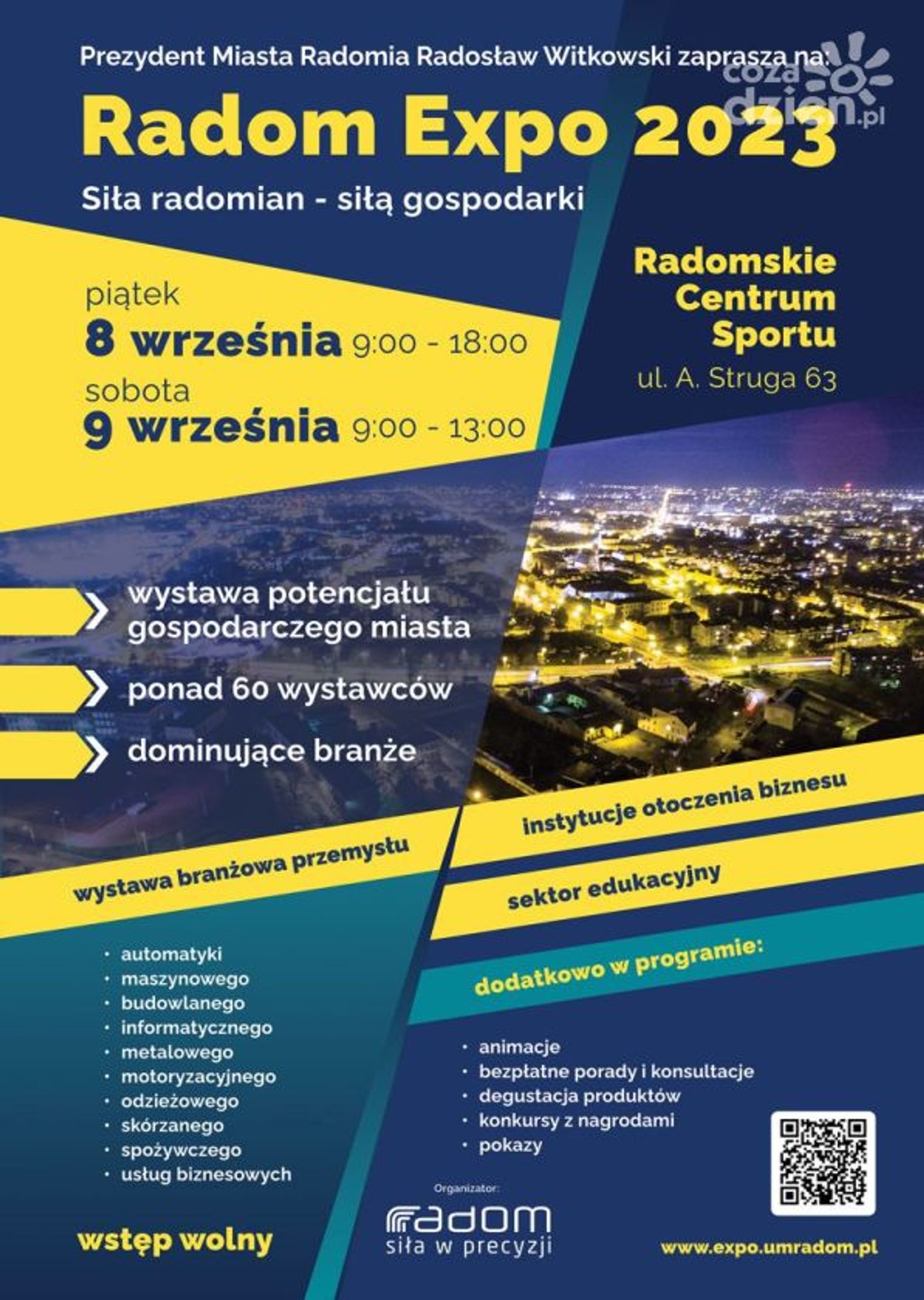 Wydarzenie odbędzie się pod hasłem "Siła radomian - siłą gospodarki". Wezmą w nich udział firmy z różnych branż przemysłu m.in. automatyki, budownictwa, motoryzacji, biznesu czy informatyki. Wystawcy zaprezentują, w jaki sposób można wykorzystać potencjał gospodarczy naszego miasta.