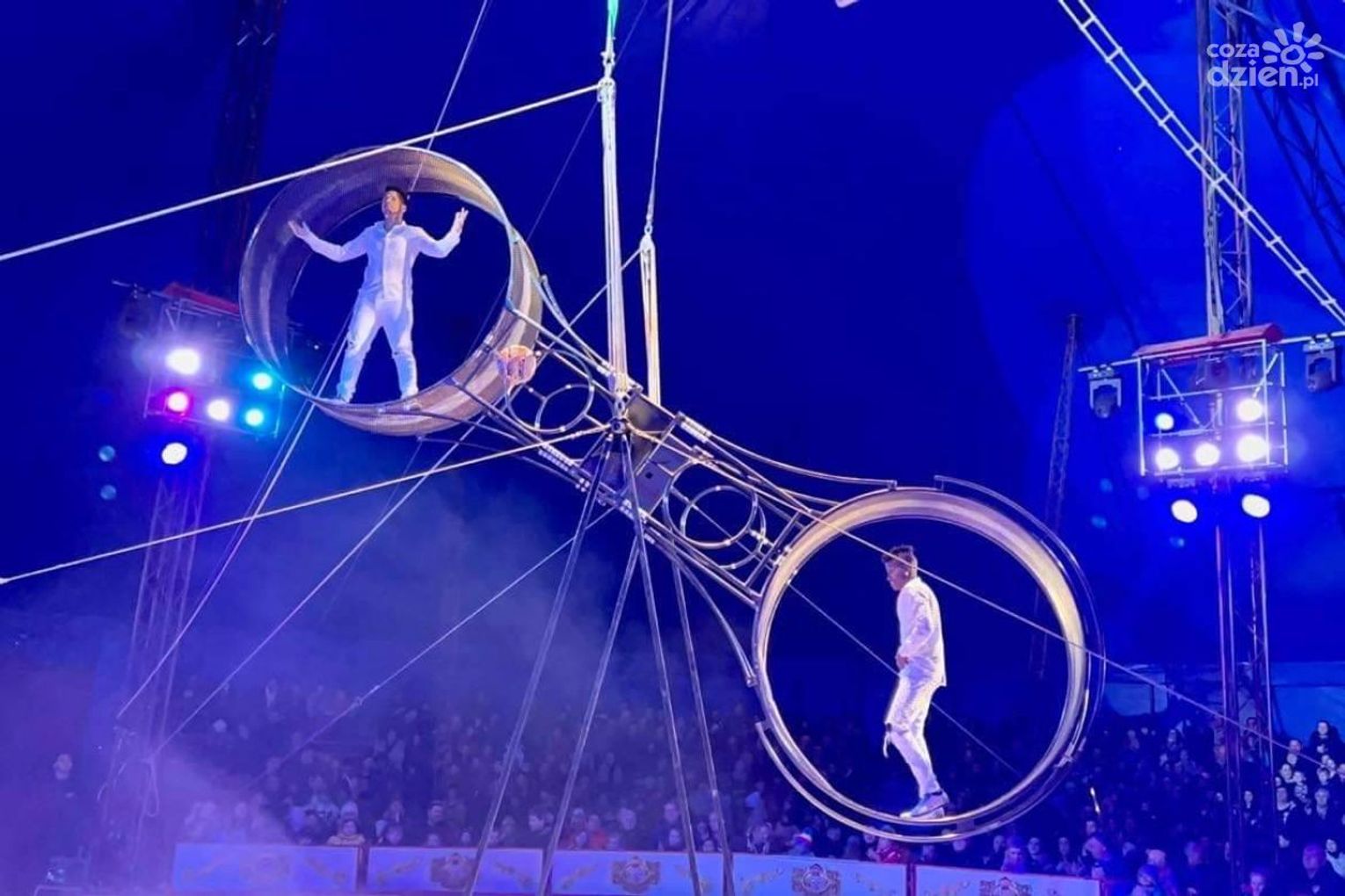 - akrobatkę na trapezie w ewolucjach pod kopułą cyrku