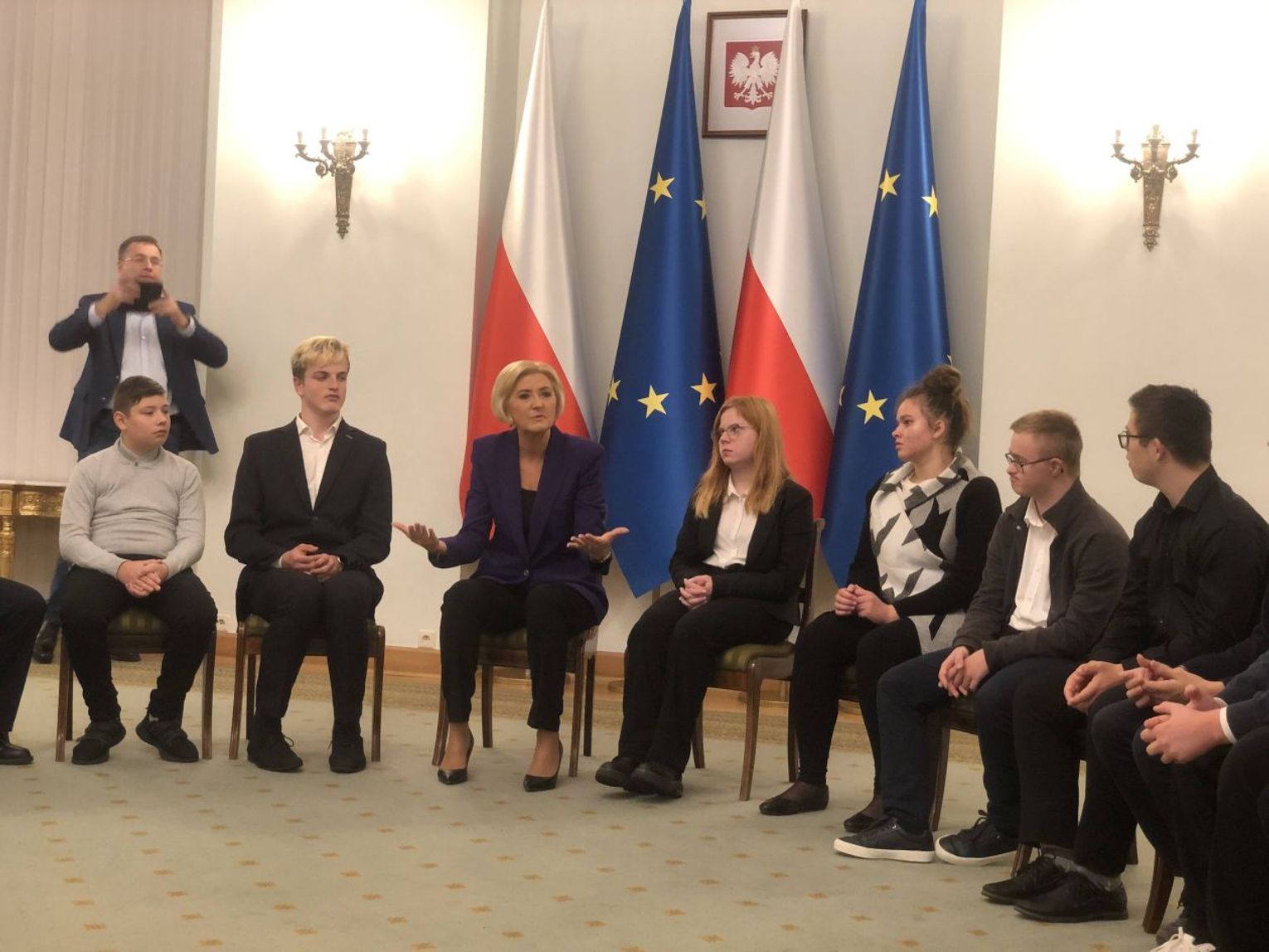 Wizyta rozpoczęła się od oprowadzenia po Pałacu Prezydenckim. Spotkanie z pierwszą damą odbyło się w sali Kolumnowej.
