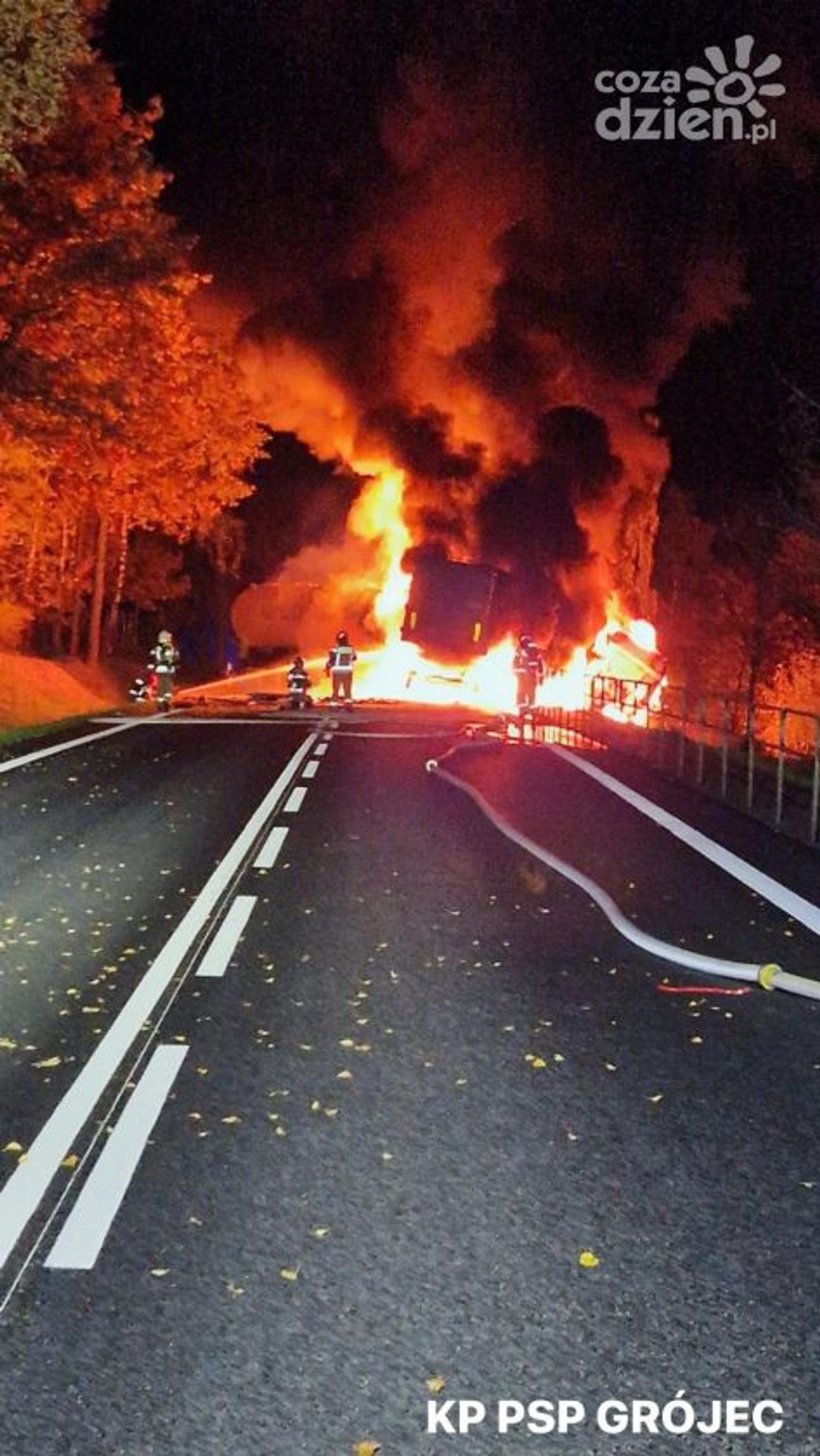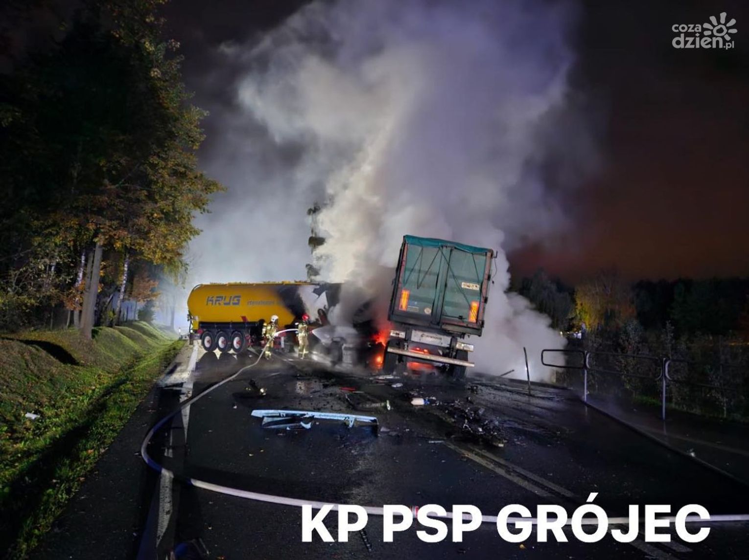 Do zdarzenia doszło ok. godz. 5.00 na 142 kilometrze drogi krajowej nr 50 w miejscowości Przęsławice w powiecie grójeckim. Czołowo zderzyły się tam dwa samochody ciężarowe, które po chwili stanęły w ogniu. Jednym z nich była cysterna przewożąca materiały łatwopalne.