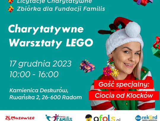 Oprócz klocków podczas imprezy przewidziane są animacje dla najmłodszych, a także atrakcyjne licytacje charytatywne. Na wspomnianym wyżej wydarzeniu na Facebooku organizatorzy regularnie publikują przedmioty, które będzie można wylicytować na evencie. Celem zbiórki jest organizacja letniego wypoczynku dla dzieci przebywających w różnych formach pieczy zastępczej - Mamy nadzieję, że wspólnie sprawimy dzieciakom świetny prezent gwiazdkowy! - mówią wspólnym głosem organizatorzy oraz przedstawiciele fundacji Familis.
