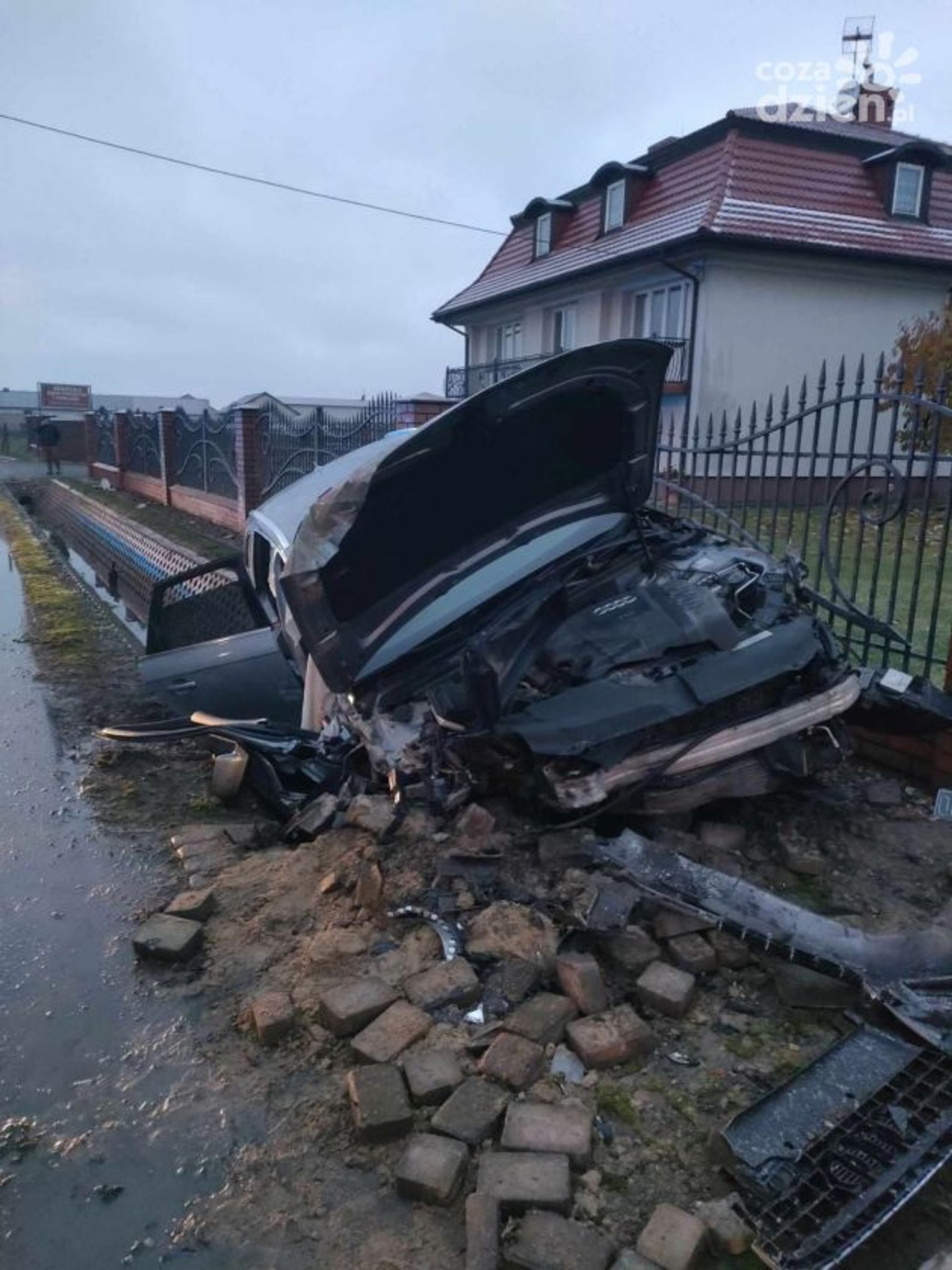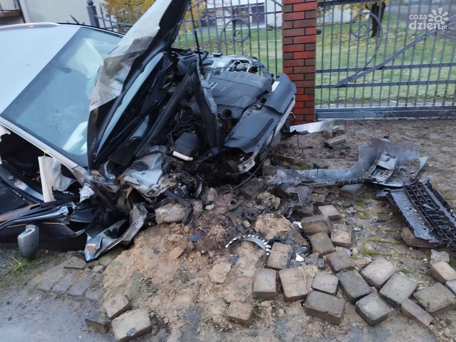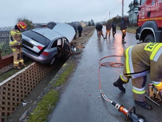 Do zdarzenia doszło we wtorek, 21 listopada po godz. 15 w Podczaszej Woli w gminie Klwów. Z niewyjaśnionych przyczyn osobowe audi zjechało z drogi i uderzyło w betonowy przepust, a także ogrodzenie jednej z posesji. Kierowca był zakleszczony w pojeździe, potrzebna była interwencja straży. Po wydostaniu go z auta, trafił do szpitala.