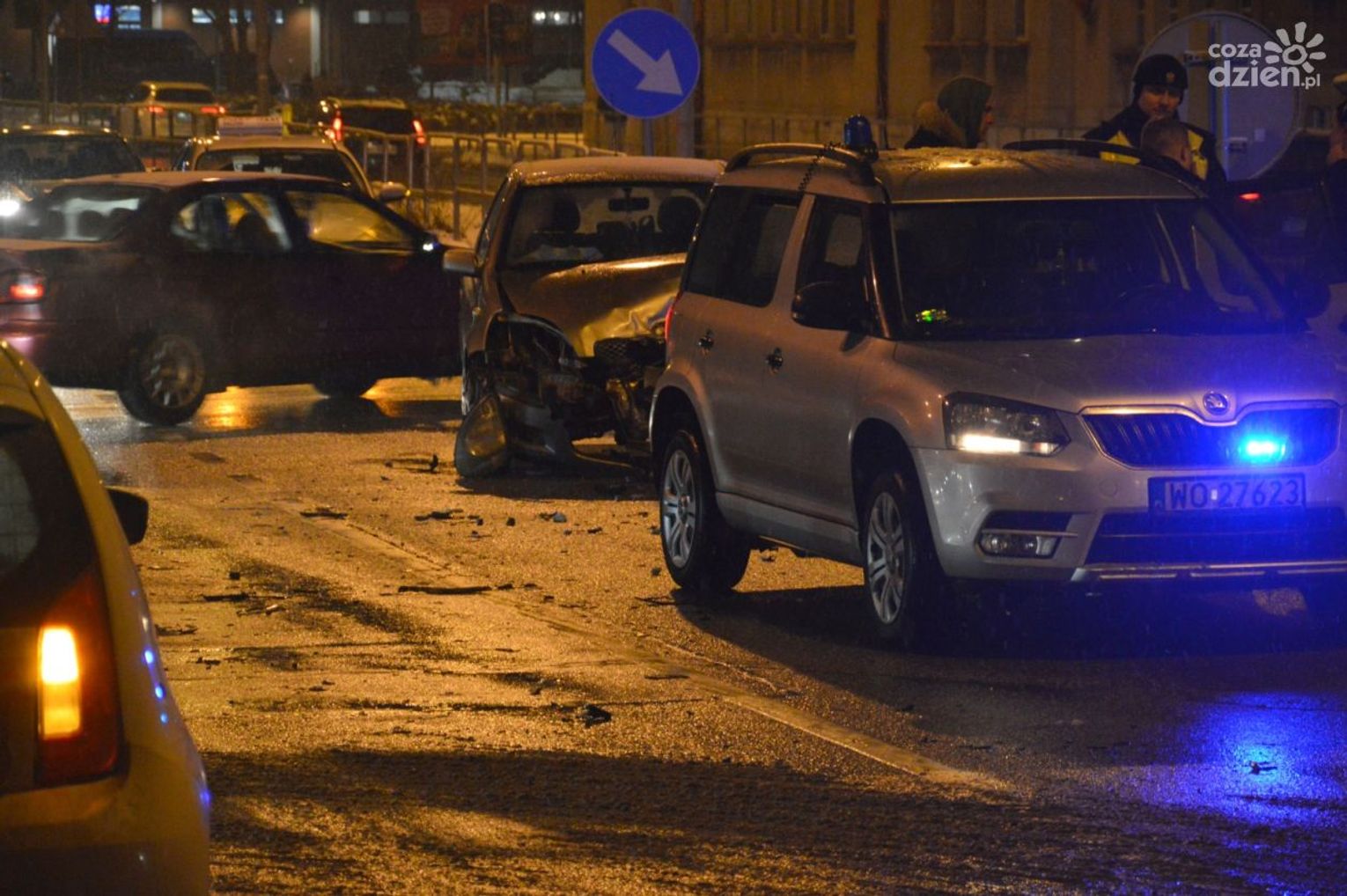 Do zdarzenia doszło 9 grudnia ok. godz. 18. Na skrzyżowaniu ul. Dowkontta i Grzecznarowskiego zderzyły się trzy samochody - bmw, toyota i skoda.