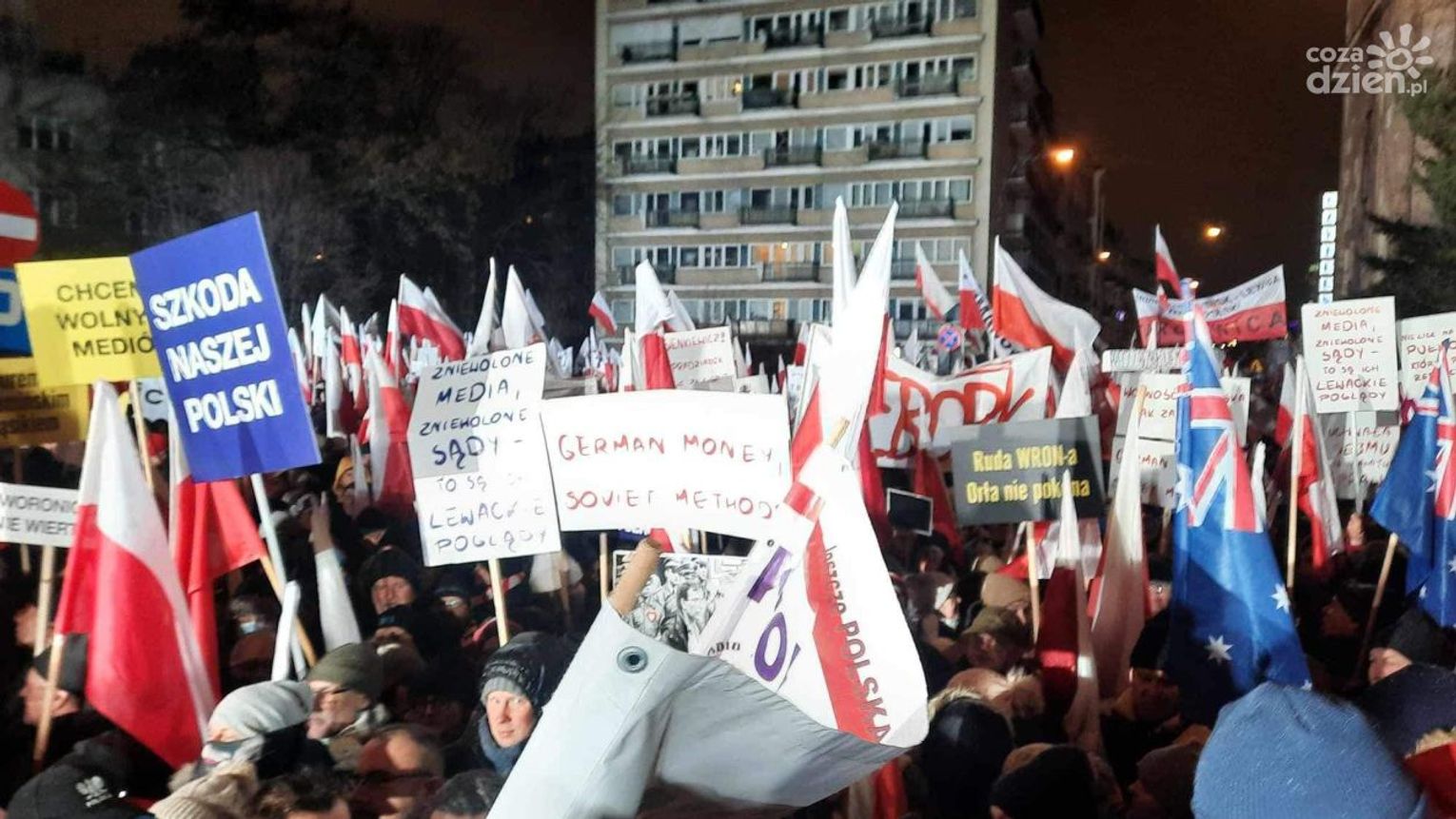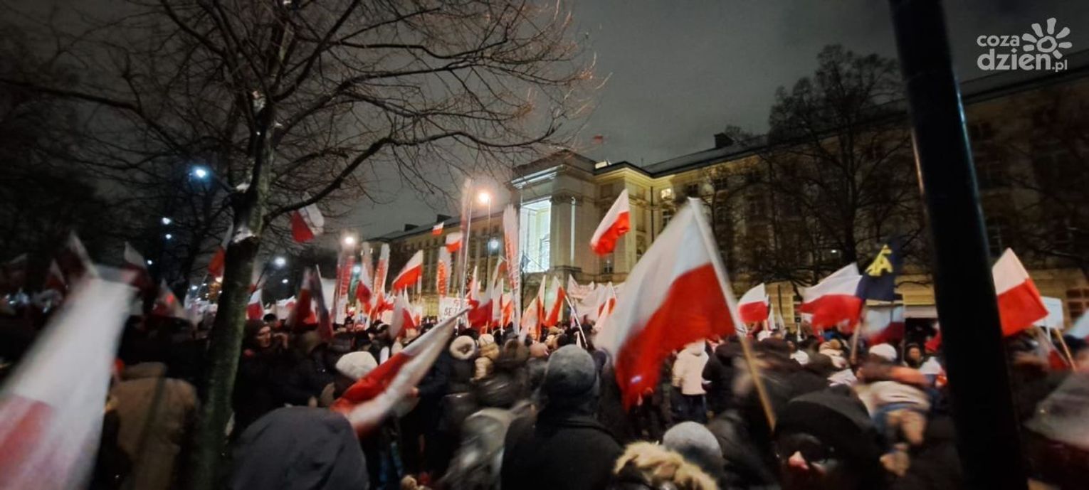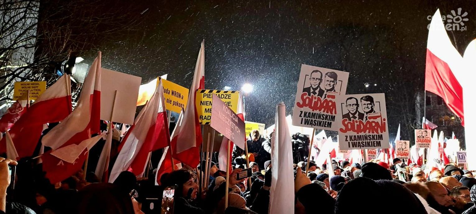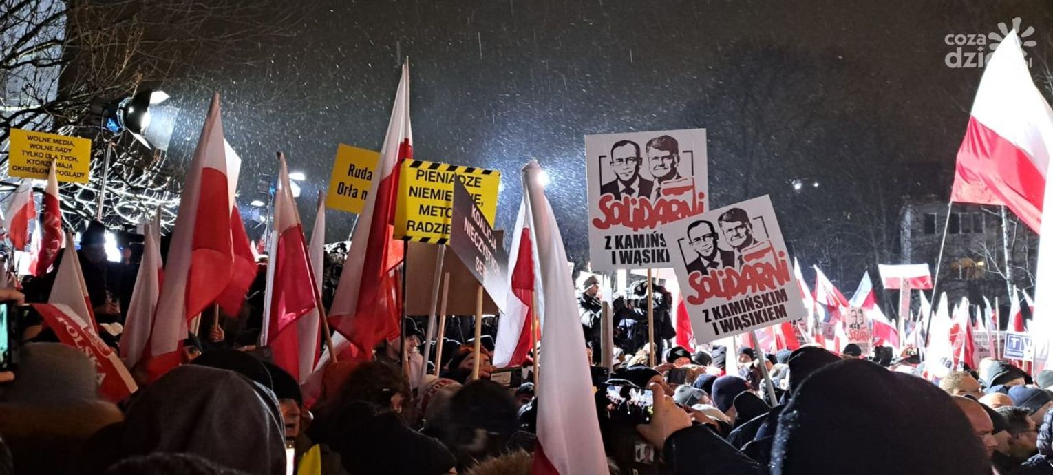 Celem manifestacji była dezaprobata dla zmian w mediach publicznych. Nie brakowało też wyrazów solidarności z Mariuszem Kamińskim i Maciejem Wąsikiem, którzy trafili do więzienia.
