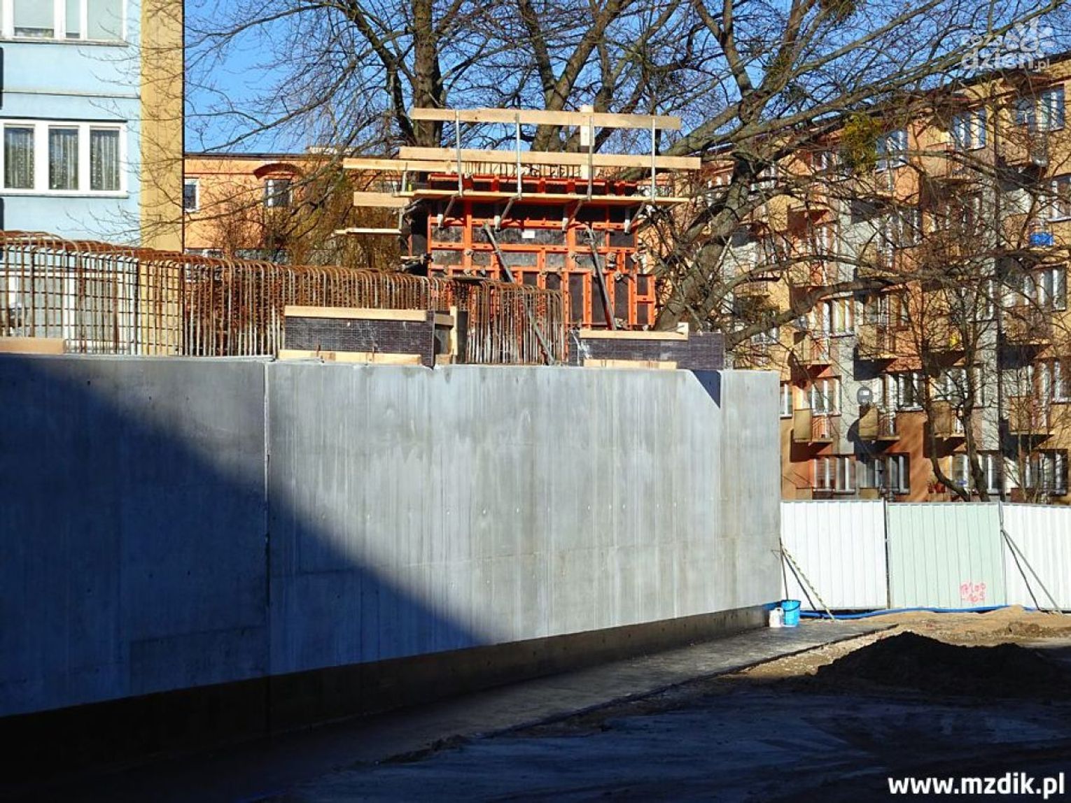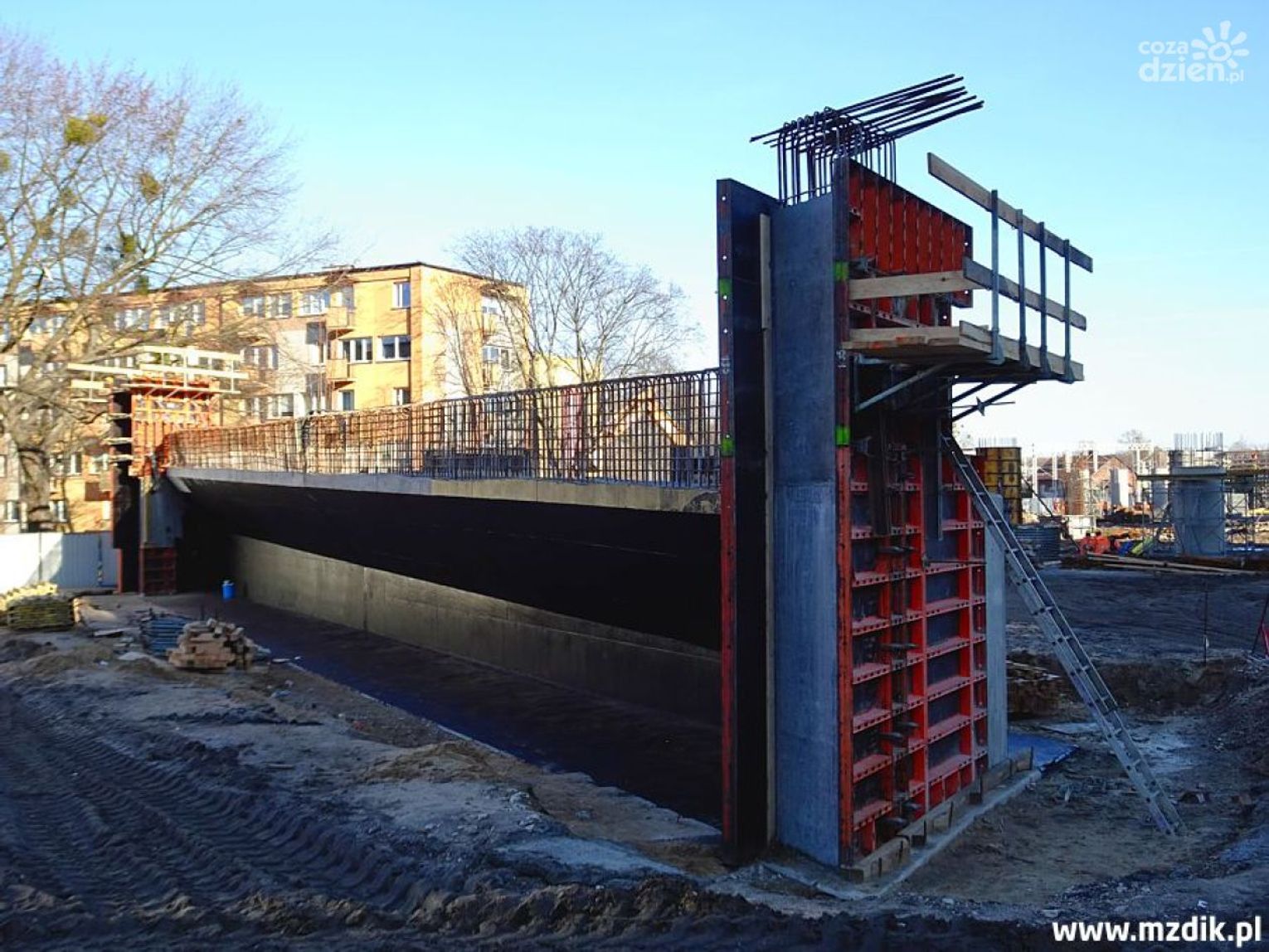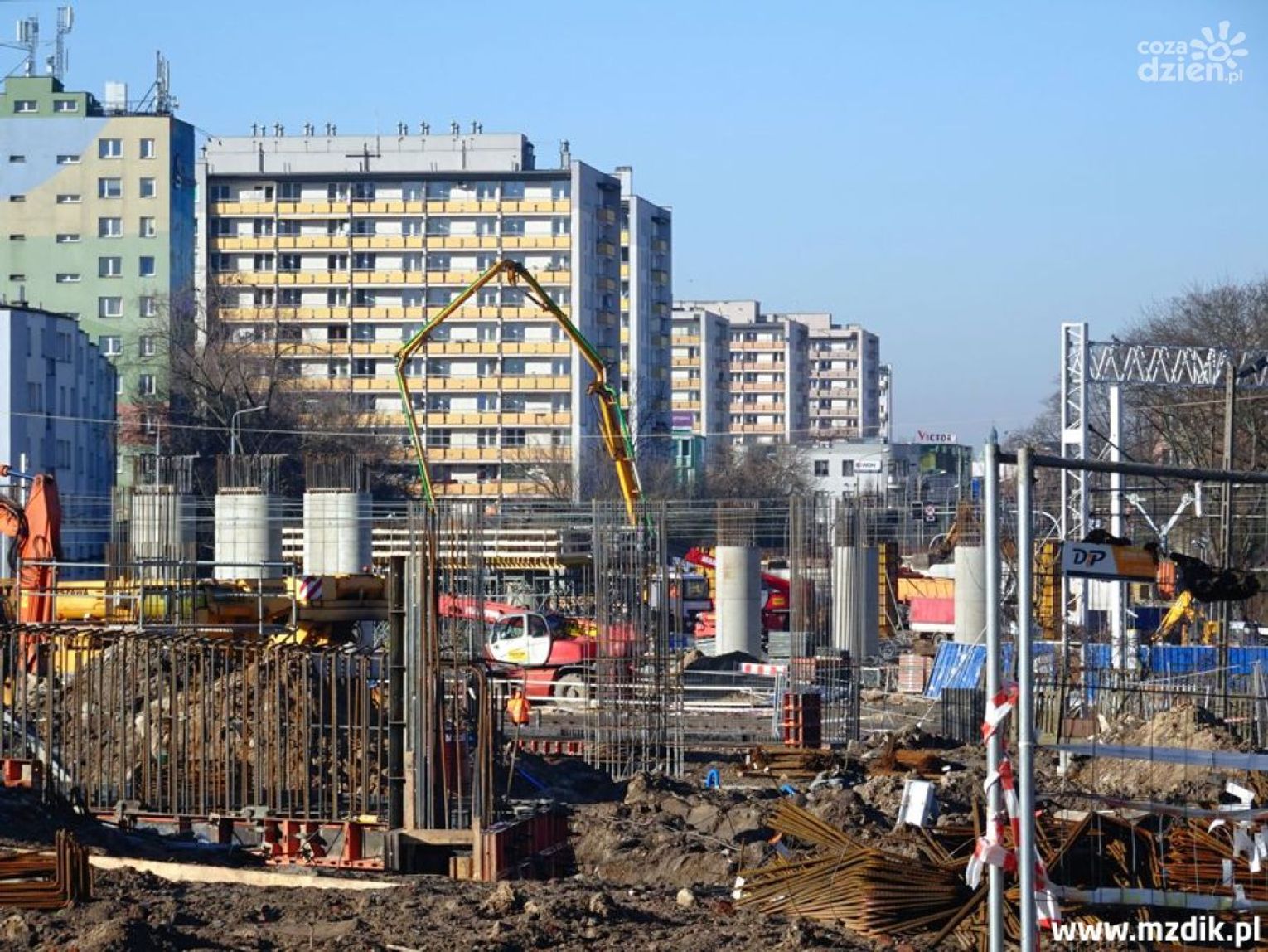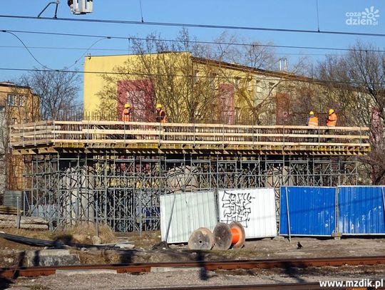 Roboty "wyszły już z ziemi", dlatego budzą coraz większe zainteresowanie u mieszkańców sąsiednich bloków i przypadkowych przechodniów. A jest na co patrzeć (oczywiście bezwzględnie zza płotu, bo wstęp na teren budowy jest zabroniony dla osób nieupoważnionych). Budowlańcy wzmocnili podłoże i postawili zachodni przyczółek, kilkadziesiąt metrów za skrzyżowaniem ulic Żeromskiego i Zbrowskiego. Sukcesywnie montowane są także zbrojenia pod kolejne filary obu wiaduktów (informujemy, że będą to dwa równoległe obiekty nad torami, podobnie jak jest to choćby na alei Wojska Polskiego lub ulicy Żółkiewskiego). Betonowanie podpór odbywa się przy pomocy specjalnych szalunków systemowych, co ułatwia i przyspiesza cały proces. Trwają poza tym kolejne prace fundamentowe, a na filarach zlokalizowanych najbliżej torów kolejowych montowane są zbrojenia pod tak zwane oczepy, czyli górne belki.