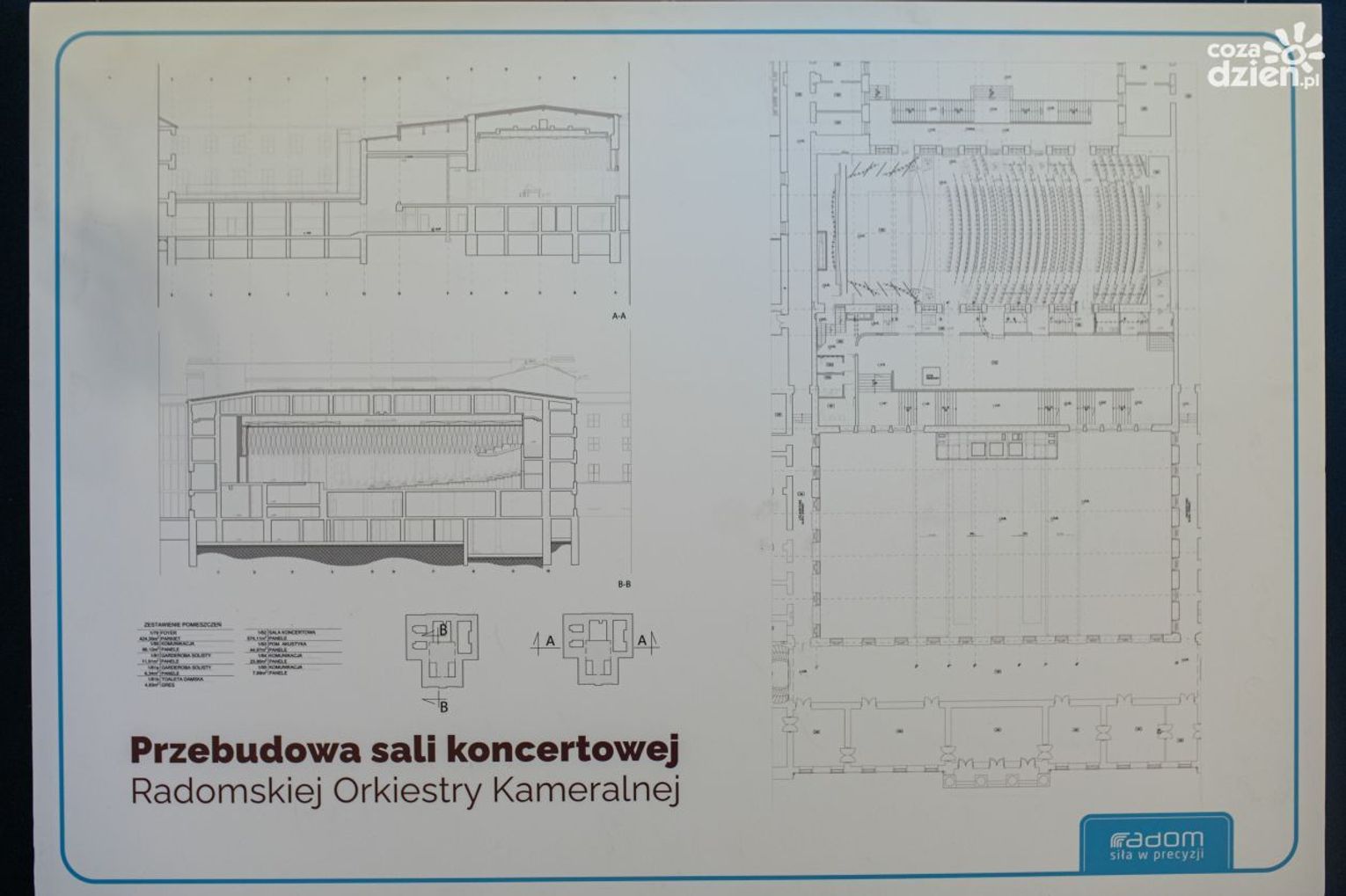 W budynku Radomskiej Orkiestry Kameralnej pojawiły się plansze z projektem przebudowy. Projekt zakłada remont: sali widowiskowej wraz z balkonem, reprezentacyjnego foyer, strefy zaplecza sali, pomieszczeń technicznych i pomocniczych, pomieszczeń administracji, a także szatni i węzła sanitarnego. Koszt tej inwestycji szacowany jest na 35 mln zł. Po uzyskaniu odpowiedniego dofinansowania, sala zostanie przebudowana w taki sposób, by spełniała standardy sali filharmonicznej.