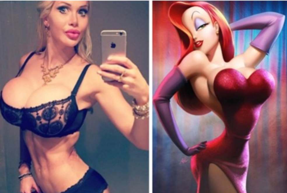Pod spodem znajdziecie zdjęcia nowej gwiazdki chirurgi plastycznej. Pierwsze z nich to 25-latka przed operacjami - kolejne to już radykalna zmiana swojego ciała. Na trzecim zdjęciu znajdziemy porównanie Pixee Fox do jej wymarzonej Jessici Rabbit.