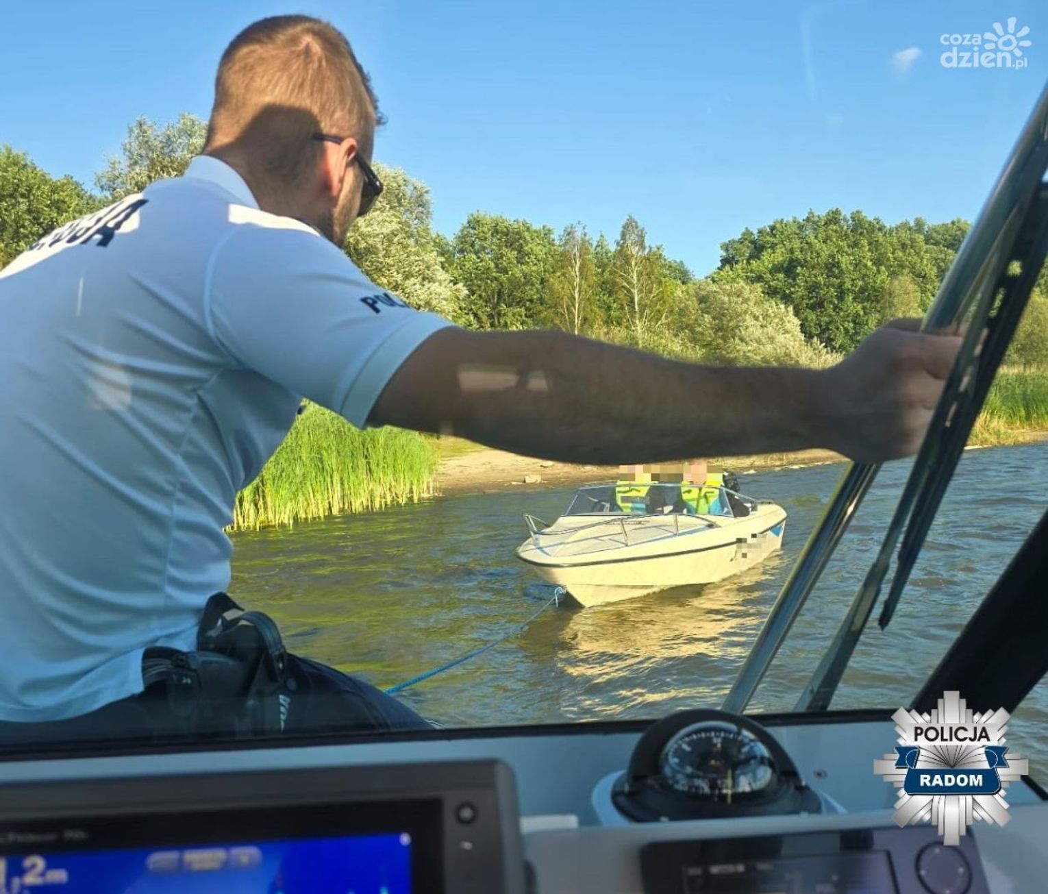 - Jedną z takich interwencji policjanci przeprowadzili kilka dni temu. Patrolując policyjną łodzią okolice plaży w Domaniowie zauważyli dryfującą łódź motorową. Natychmiast popłynęli w jej kierunku by sprawdzić, czy ktoś potrzebuje pomocy. Okazało się, że doszło do awarii silnika co uniemożliwiło załodze sterowanie łodzią i dotarcie do brzegu - informuje Justyna Jaśkiewicz z radomskiej policji.