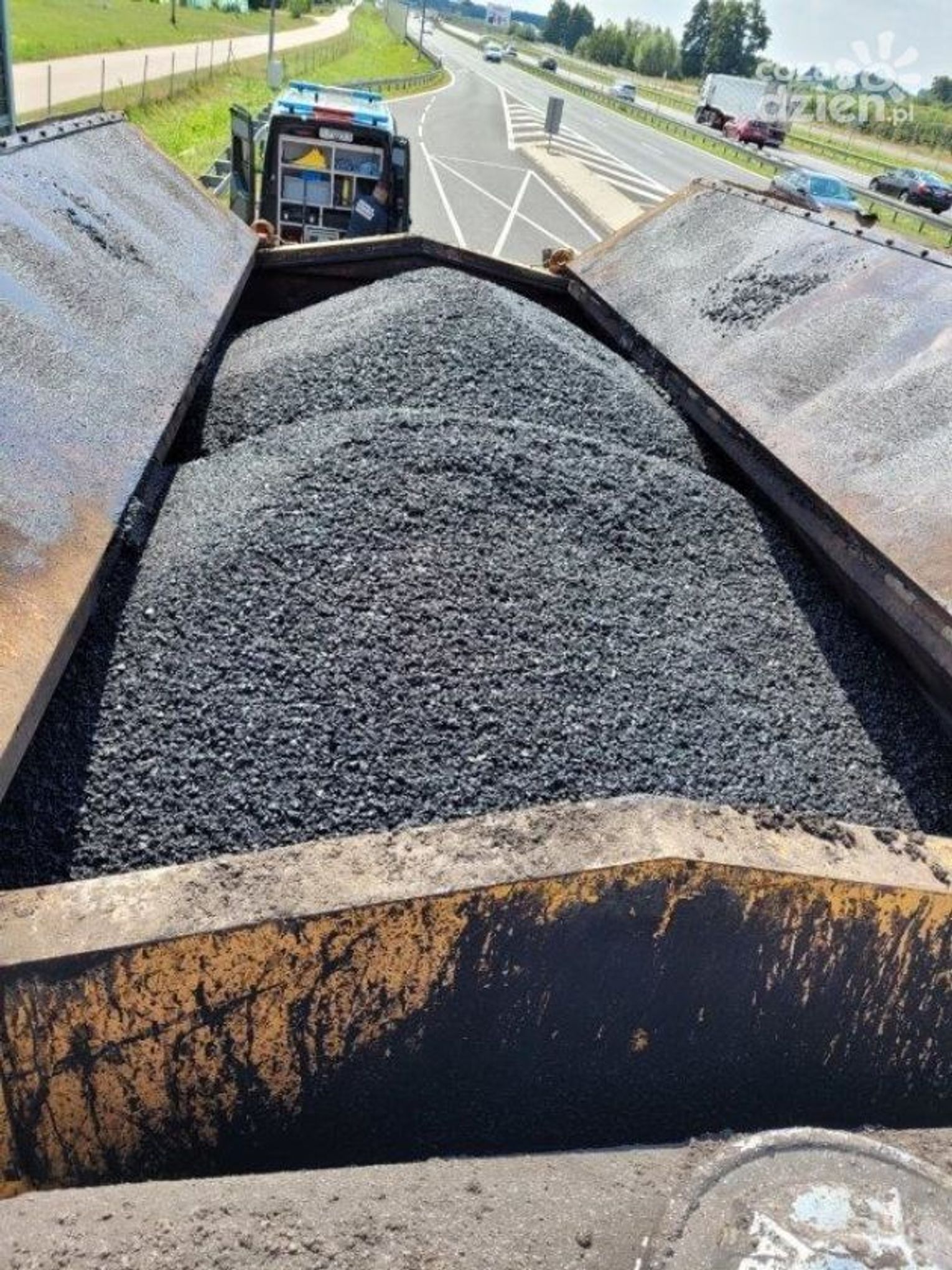 Samochód został zatrzymany w czwartek, 1 sierpnia na trasie S7 koło Grójca. Pojazdem przewożona była masa bitumiczna do naprawy dróg w Górze Kalwarii.