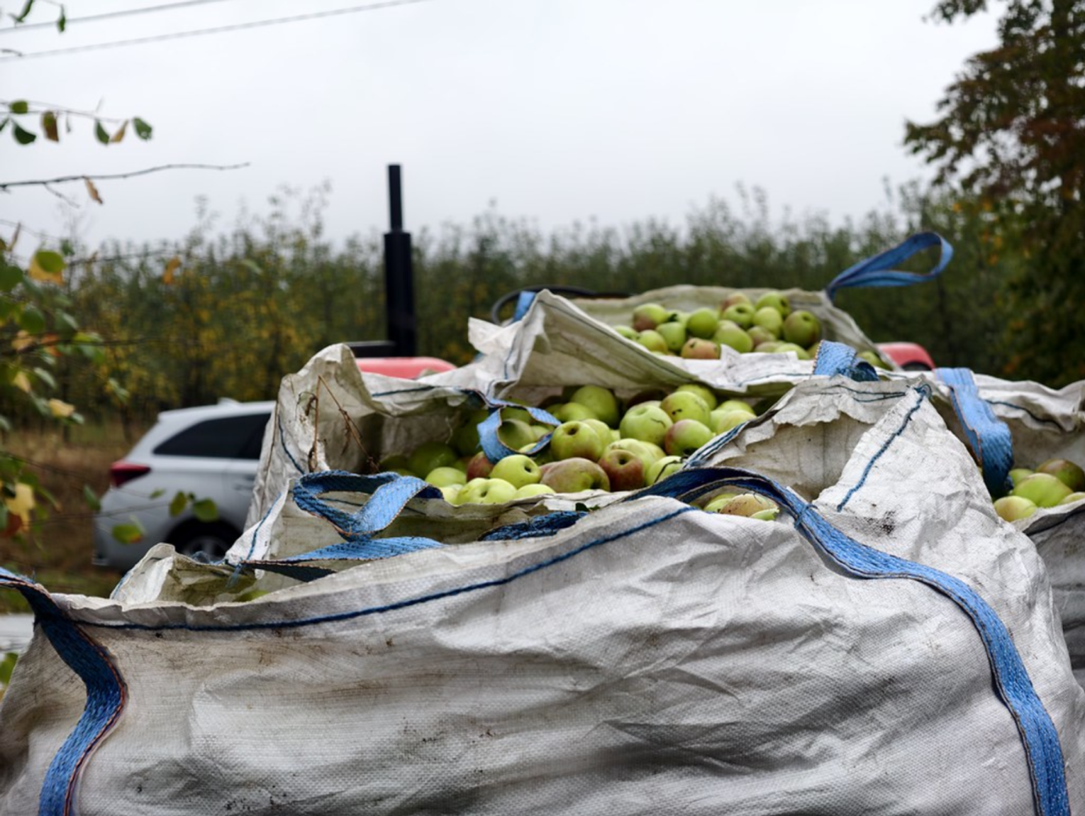 Wybór miejsca nie był przypadkowy. Gdy pan Tomasz Krzciuk zaczynał uprawę metodą ekologiczną, wielu wróżyło mu porażkę. Wkrótce okazało się, że stosując tylko kilka razy w roku oprysk naturalnym olejem całkowicie wyeliminował zagrożenie chorobami, grzybami czy szkodnikami. Mimo niesprzyjających warunków atmosferycznych, liczne grupy ochotników zbierały owoce z otrząśniętych wcześniej jabłoni. Dwa traktory wahadłowo zwożące skrzyniopalety pełne jabłek okazały się niewystarczające – po krótkiej przerwie spowodowanej intensywnymi opadami deszczu z pomocą przyszedł sąsiad, zapewniając trzeci traktor. Zaangażowani uczestnicy, wraz z Maciejem Maciakiem (liderem Ruchu) oraz Tomaszem Chuchałą (głównym organizatorem) nie chcieli przerwać akcji po wyzbieraniu spadów i kontynuowali zrywając owoce bezpośrednio z drzew.