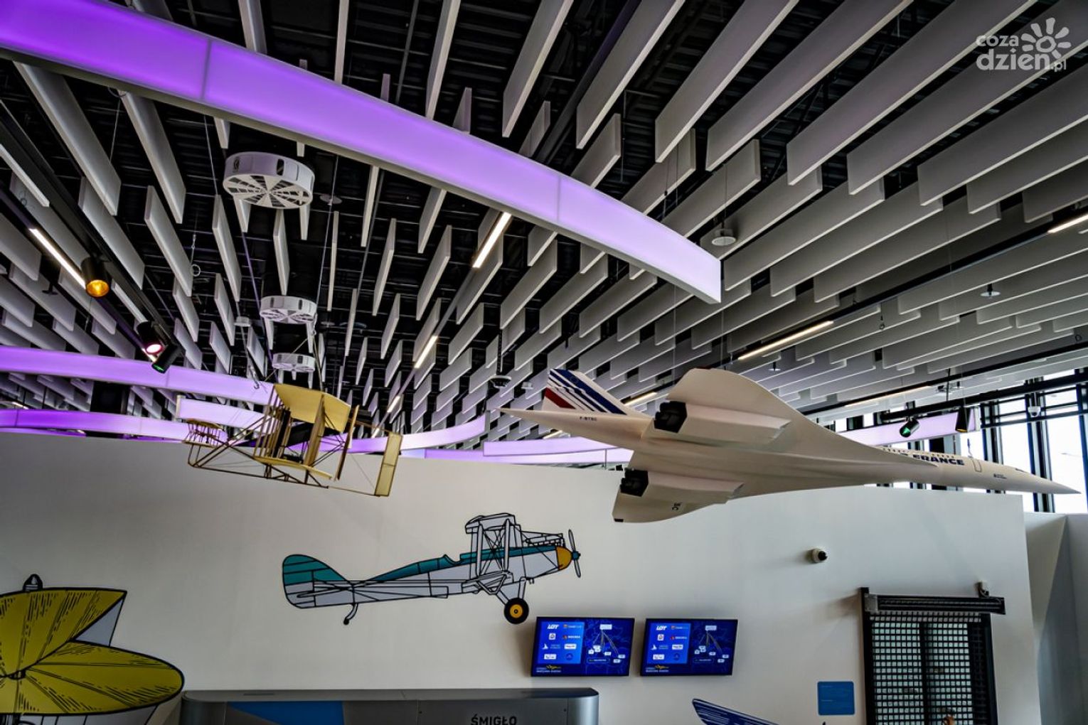 Wizualną atrakcją jest z pewnością drzewo multimedialne, widoczne w całej przestrzeni hali lotniska.