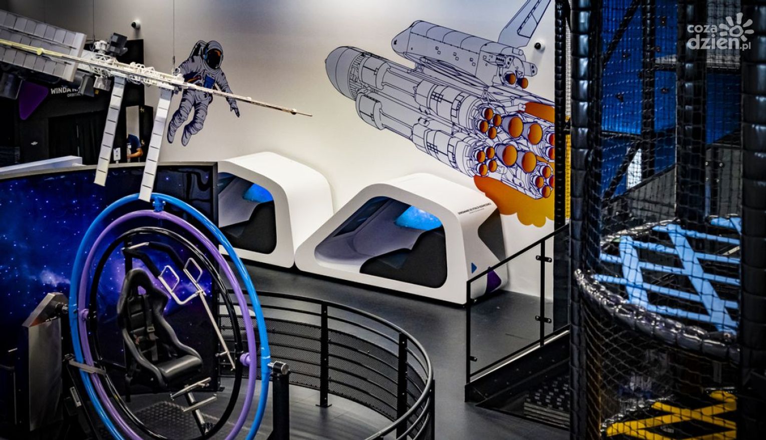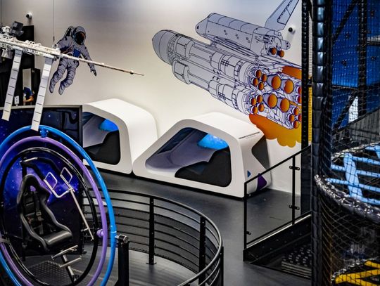 Osoby chcące odpocząć od kosmicznych wrażeń mogą skorzystać ze strefy relaksu i scenograficznej fotobudki z silnikiem, gdzie można zrobić sobie pamiątkowe zdjęcie z włączonym nawiewem imitującym działanie wiatru.