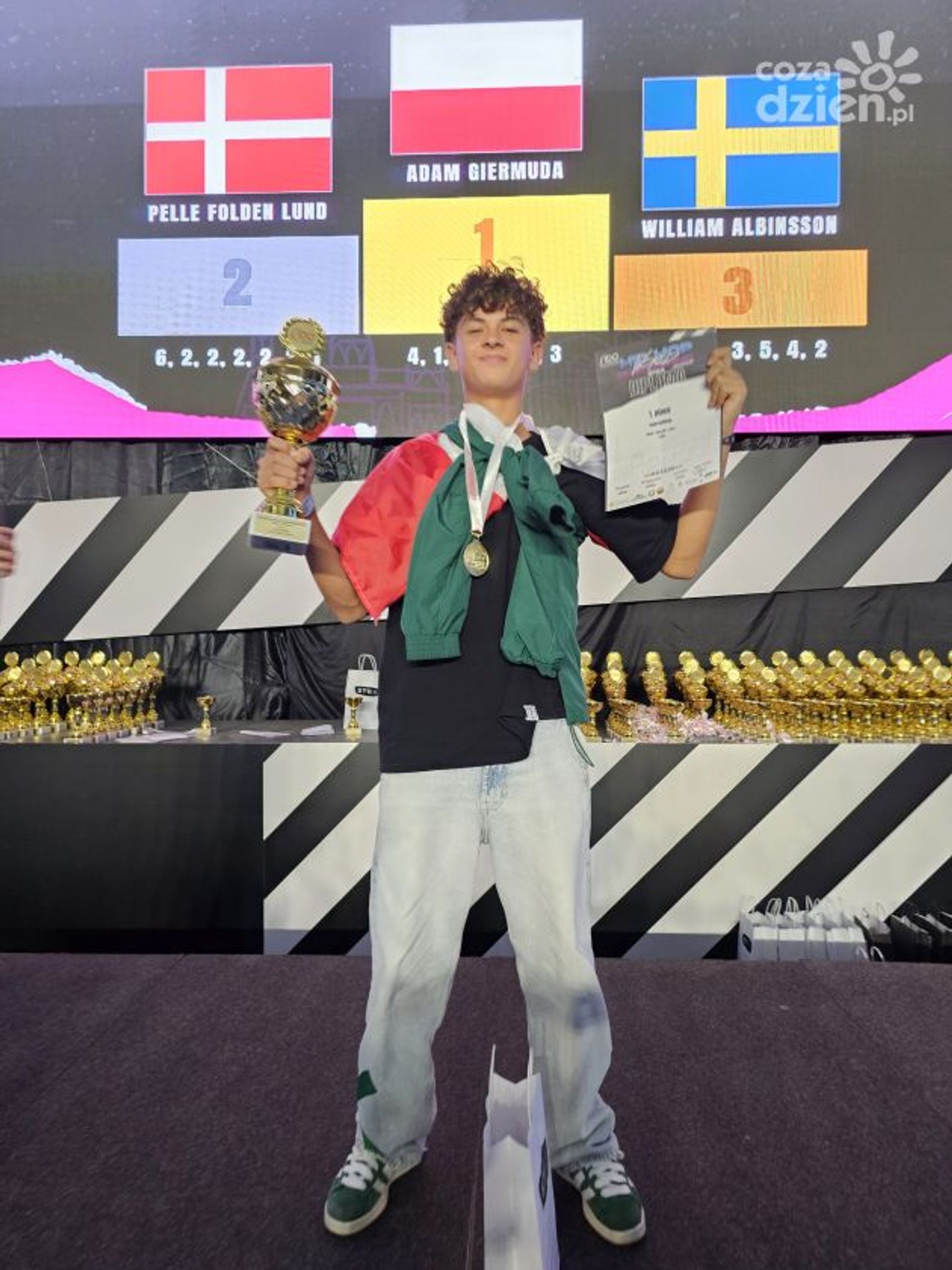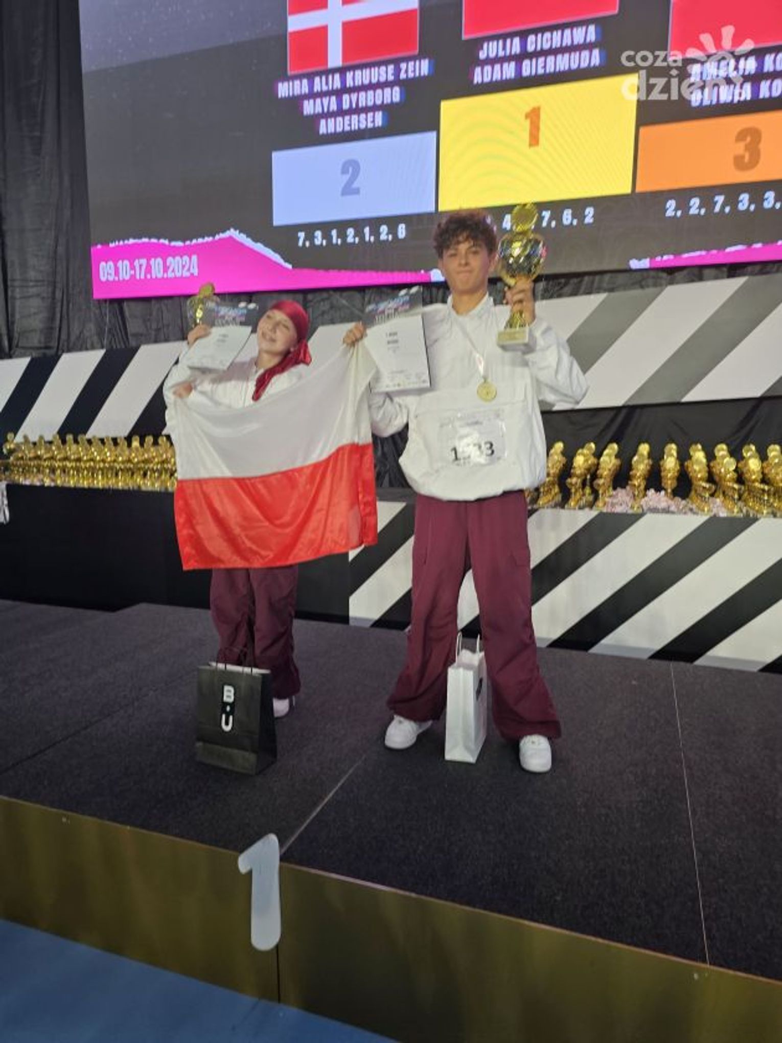 Adam Giermuda zdobył tytuł mistrzowski w kategorii solo junior 1, a wraz z Julią Cichawą byli najlepsi w kategorii duetów juniorskich.