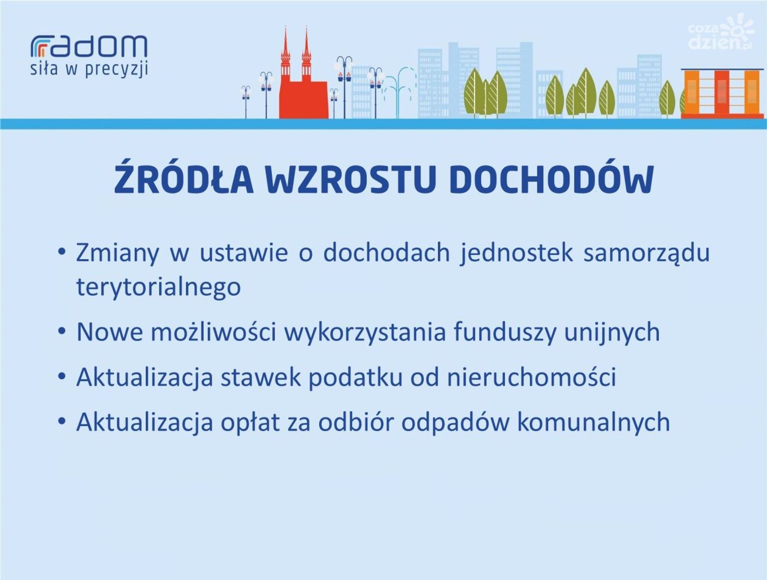 To spowoduje, że zadłużenie naszego miasta wzrośnie. - Na koniec 2025 roku będzie to kwota 1 mld 250 mln zł. Jest to około 60% naszych dochodów, które w tym roku wzrastają. Uważam, że to - jak na razie - bezpieczna granica - wyjaśnia Sławomir Szlachetka, skarbnik miasta Radomia.