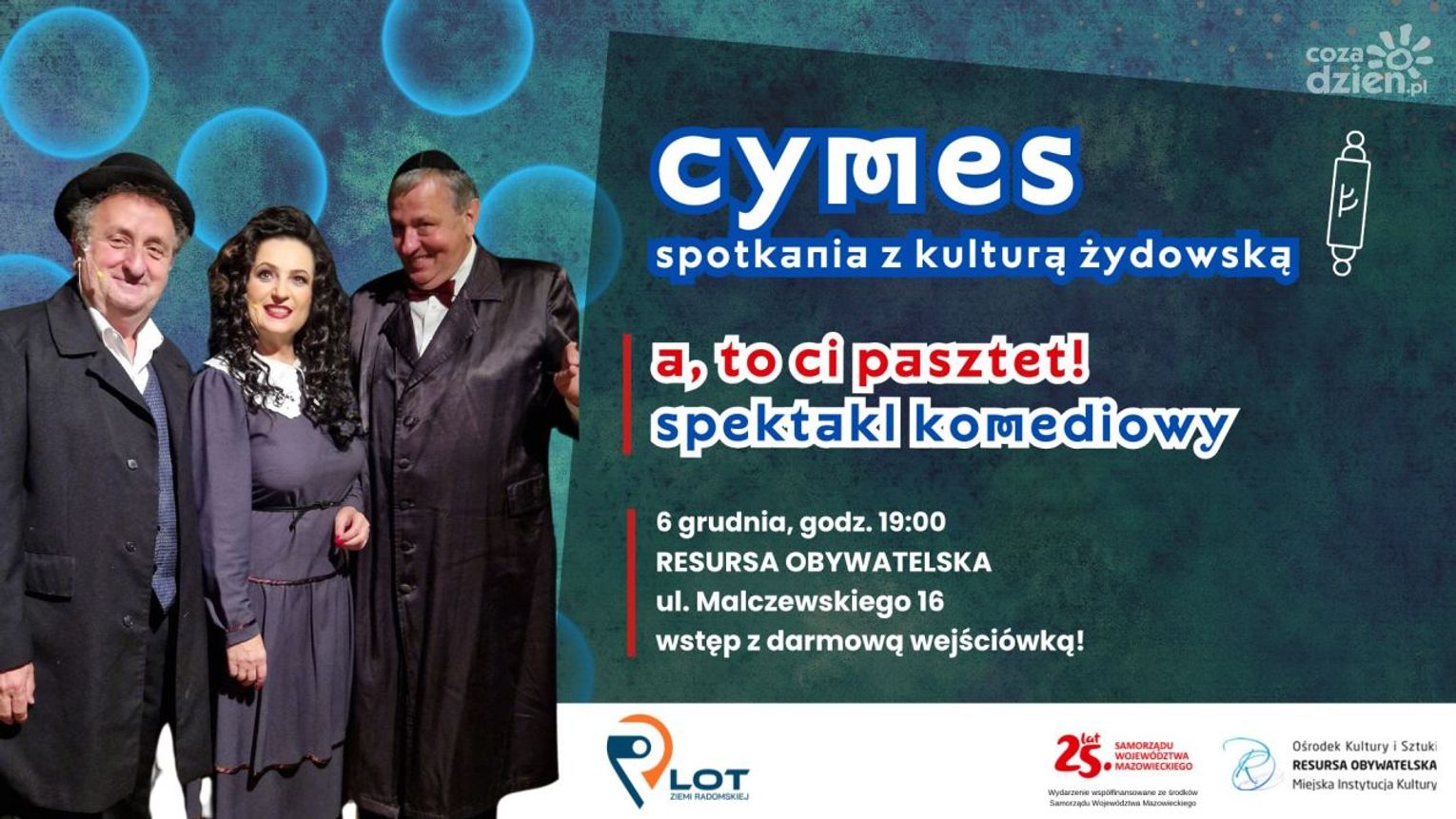 Lokalna Organizacja Turystyczna zaprasza na finał Spotkań z kulturą żydowską "Cymes". Na deskach Resursy Obywatelskiej grupa aktorów związanych z Fundacją Czardasz wykona spektakl komediowy "A to Ci pasztet!".