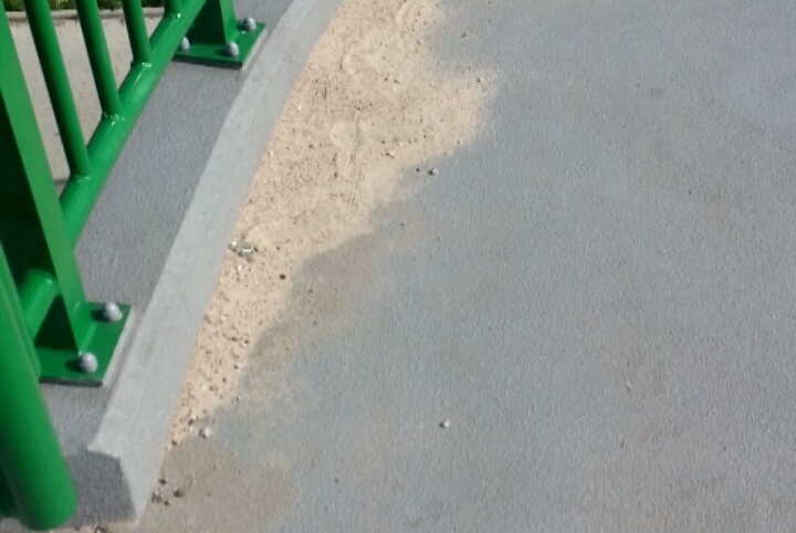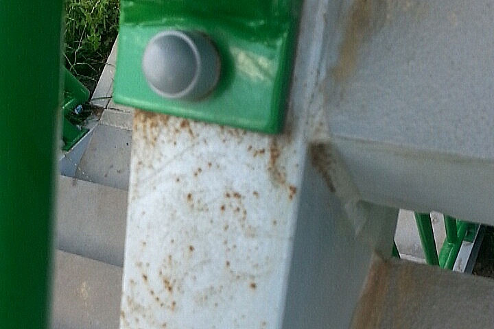 - Barierki i kotwy na kładce są wykonane z aluminium, które ma bardzo dobrą odporność na korozję. Widoczne na zdjęciach drobne ślady rdzy nie mają wpływu na wytrzymałość tych elementów. Uszkodzona płyta chodnikowa wkrótce zostanie wymieniona w ramach gwarancji.