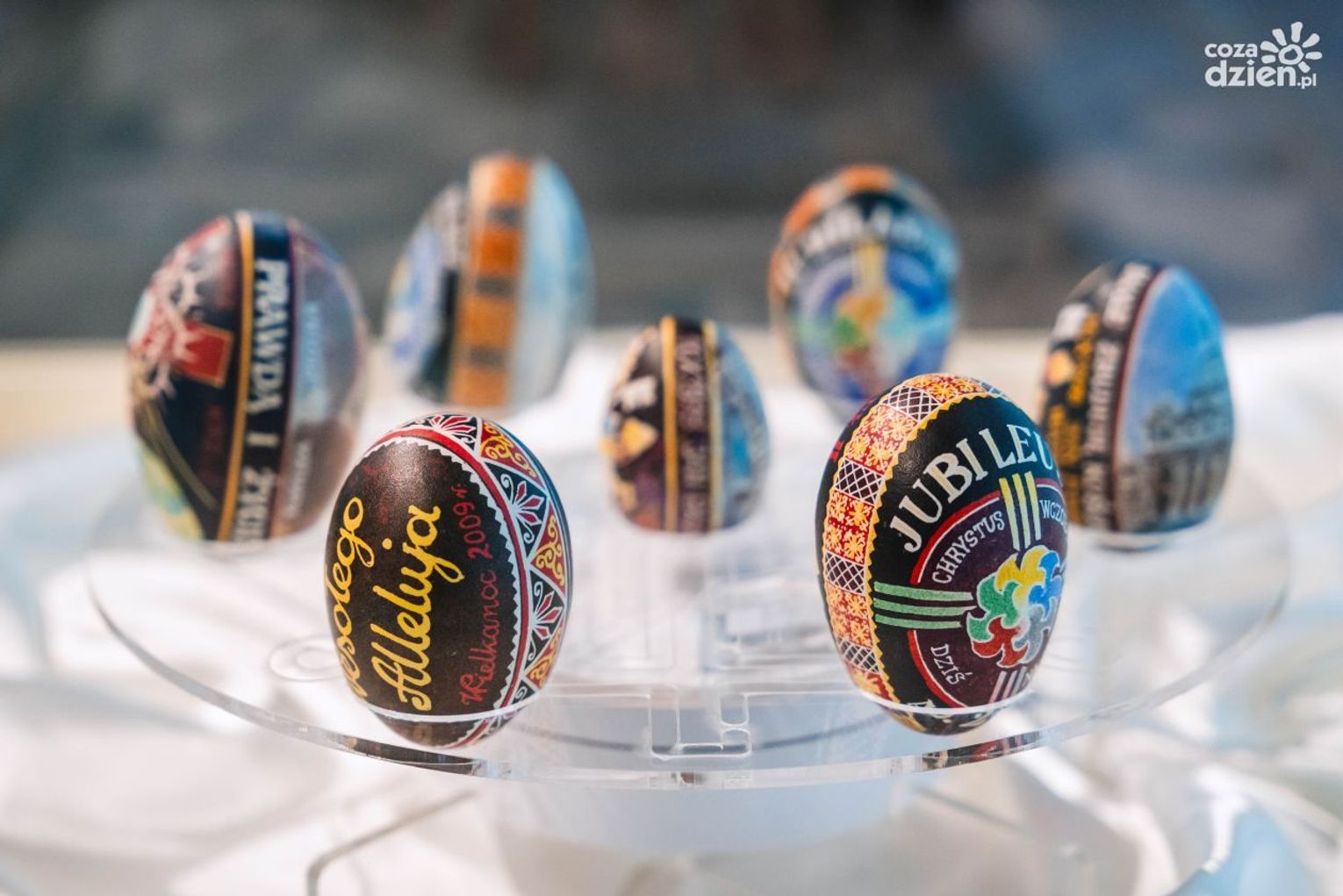Wanda Gotkiewicz wyczarowała na pisankach wizerunek Bazyliki św. Piotra, obraz Matki Boskiej Częstochowskiej, klasztor jasnogórski oraz symbole papieskie i narodowe. - Co ciekawe, artystce udało się nawet wydobyć półcienie pod kolumnami Bazyliki św. Piotra, co świadczy o jej niesamowitej zdolności artystycznej – zaznacza kuratorka wystawy.