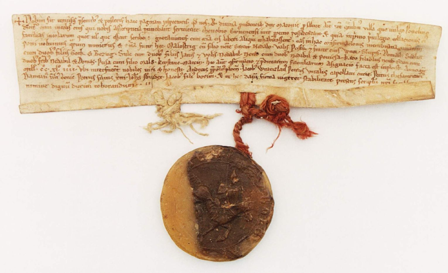 FOTO Bolesław książę mazowiecki nadaje klasztorowi w Czerwińsku wieś Powielin (Codex diplomaticus et commemorationum Masoviae generalis, wyd. J. K. Kochanowski, Warszawa 1919, nr 447). Archiwum Główne Akt Dawnych, Zbiór dokumentów pergaminowych nr 6436