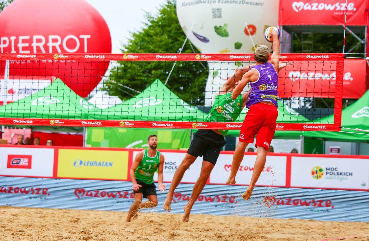 – Trochę przypomniały się stare czasy, szczególnie wstawanie w pośpiechu, szybkie śniadania i pierwszy mecz już o dziewiątej rano – mówi Michał Kubiak, mistrz Europy w siatkówce plażowej z 2004 roku. – Dla nas ważny był aspekt charytatywny tego turnieju, chcieliśmy się włączyć w pomaganie – dodał Łukasz Kaczmarek, mistrz świata juniorów w plażówce z 2011 roku. – Poziom organizacji tutaj w Przysusze jest bardzo wysoki, co roku coraz lepszy, naprawdę czapki z głów dla organizatorów. Obaj nasi utytułowani siatkarze zapytani, jakie warzywa i owoce mogliby jeść do końca życia – turniej wspiera Moc Polskich Warzyw – postawili na... maliny, borówki i paprykę.