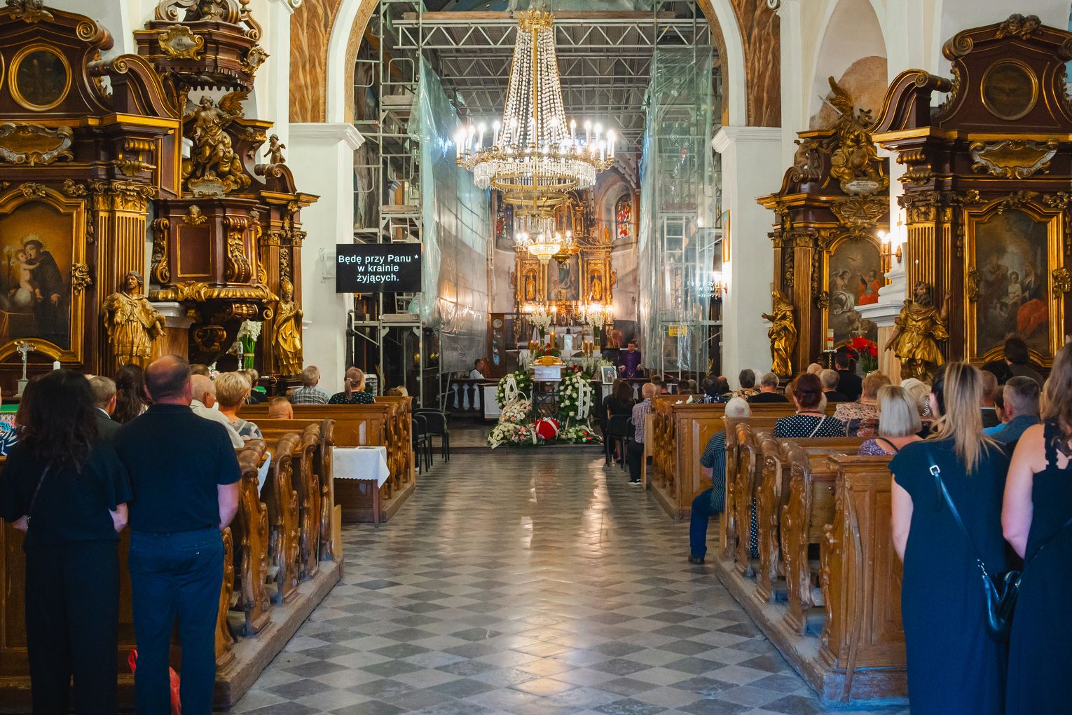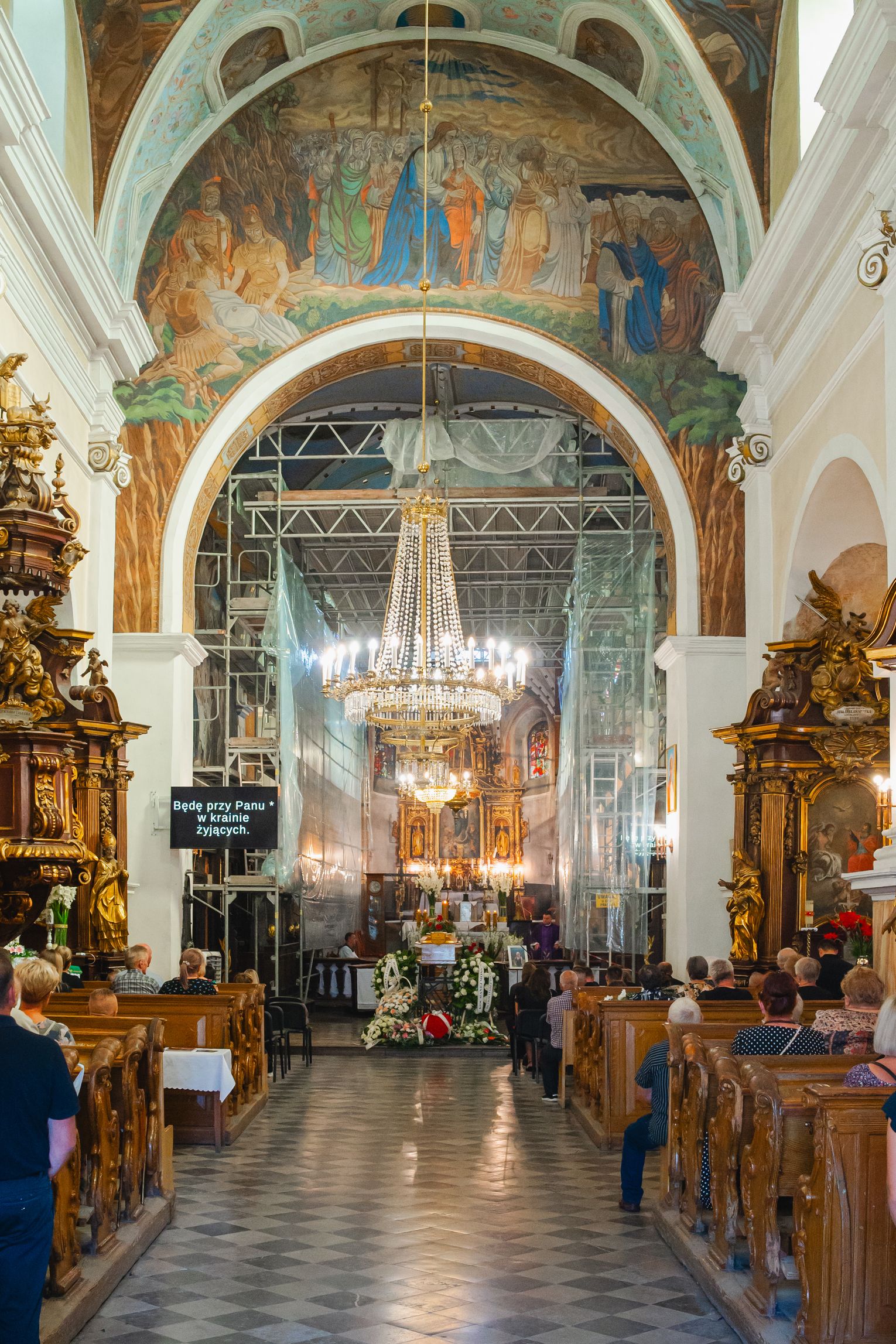 Potem przyszedł czas na polichromie zdobiące ściany i sklepienie prezbiterium. To ponad 300 metrów kwadratowych dekoracji malarskiej. Chodziło o zabezpieczenie wypraw tynkarskich i oczyszczenie, przemalowanej w latach 60. XX wieku dekoracji i jej rekonstrukcję. W efekcie powstać miała spójna dekoracja malarska, której charakter nadać powinna oczyszczona z przemalowań wcześniejsza polichromia. Przedsięwzięcie – z racji zakresu i kosztów – musiało zostać podzielone na etapy. W 2022 roku parafia na pierwszy etap prac konserwatorskich polichromii otrzymała z programu „Mazowsze dla zabytków” 70 tys. zł. Pomógł ponadto Mazowiecki Wojewódzki Konserwator Zabytków, przyznając dotację w wysokości 90 tys. zł. Także rok później iłżecka fara złożyła wniosek do programu „Mazowsze dla zabytków” na kontynuowanie prac w prezbiterium. Tym razem wsparcie Samorządu Województwa Mazowieckiego wyniosło 120 tys. zł.