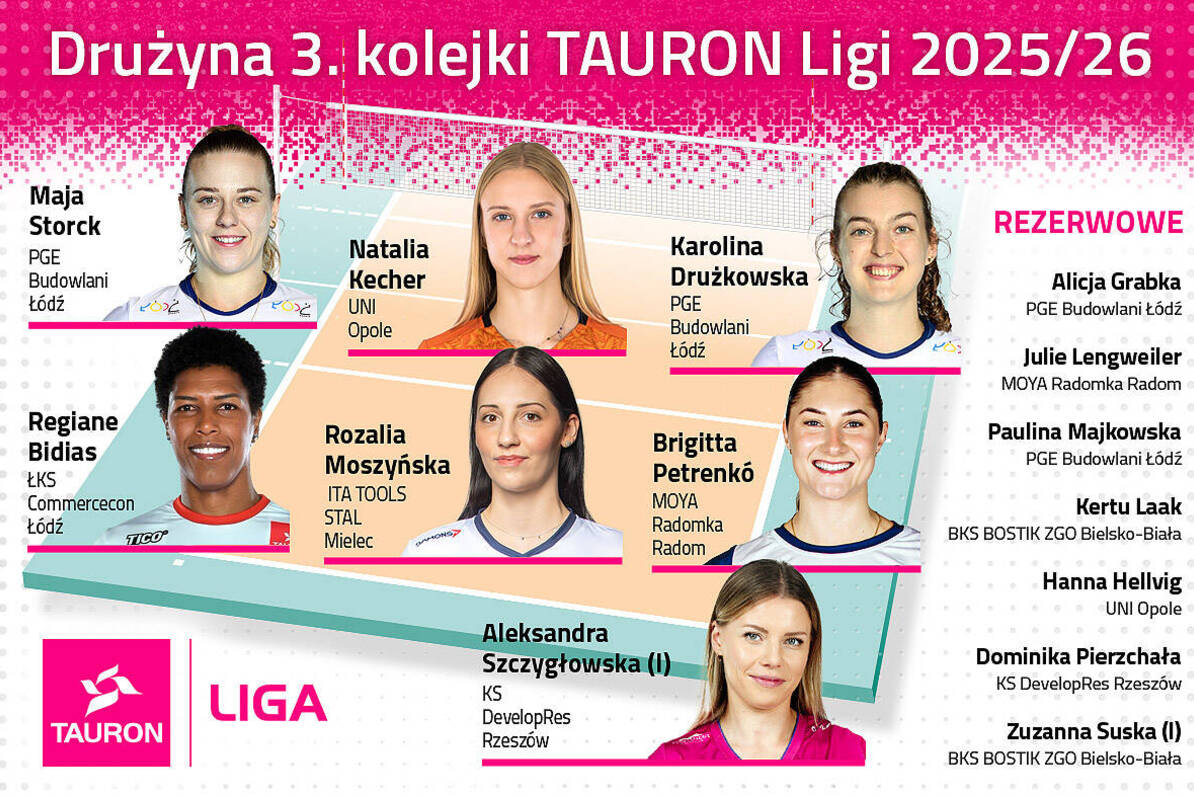 Siatkarki Moya Radomki Radom pokonały w trzeciej kolejce ŁKS Commercecon Łódź 3:2 i po tym spotkaniu zachowały pozycję liderek Tauron Ligi. Do wygranej radomianki poprowadziła rozgrywająca Brigitta Petrenko, która w dodatku zdobyła w tym starciu pięć "oczek" - dwa zagrywką, jeden atakiem i dwa blokiem. Węgierka została wybrana do drużyny kolejki. Wśród rezerwowych znalazła się z kolei przyjmująca Julie Lengweiler, która w tym spotkaniu atakowała aż 48-krotnie ze skutecznością 48 procent - skończyła 23 piłek. Ponadto przyjęła 40 zagrywek rywalek ze skutecznością 42% pozytywnego i 30% perfekcyjnego. Do tego Szwajcarka dołożyła jeszcze jednego asa serwisowego.