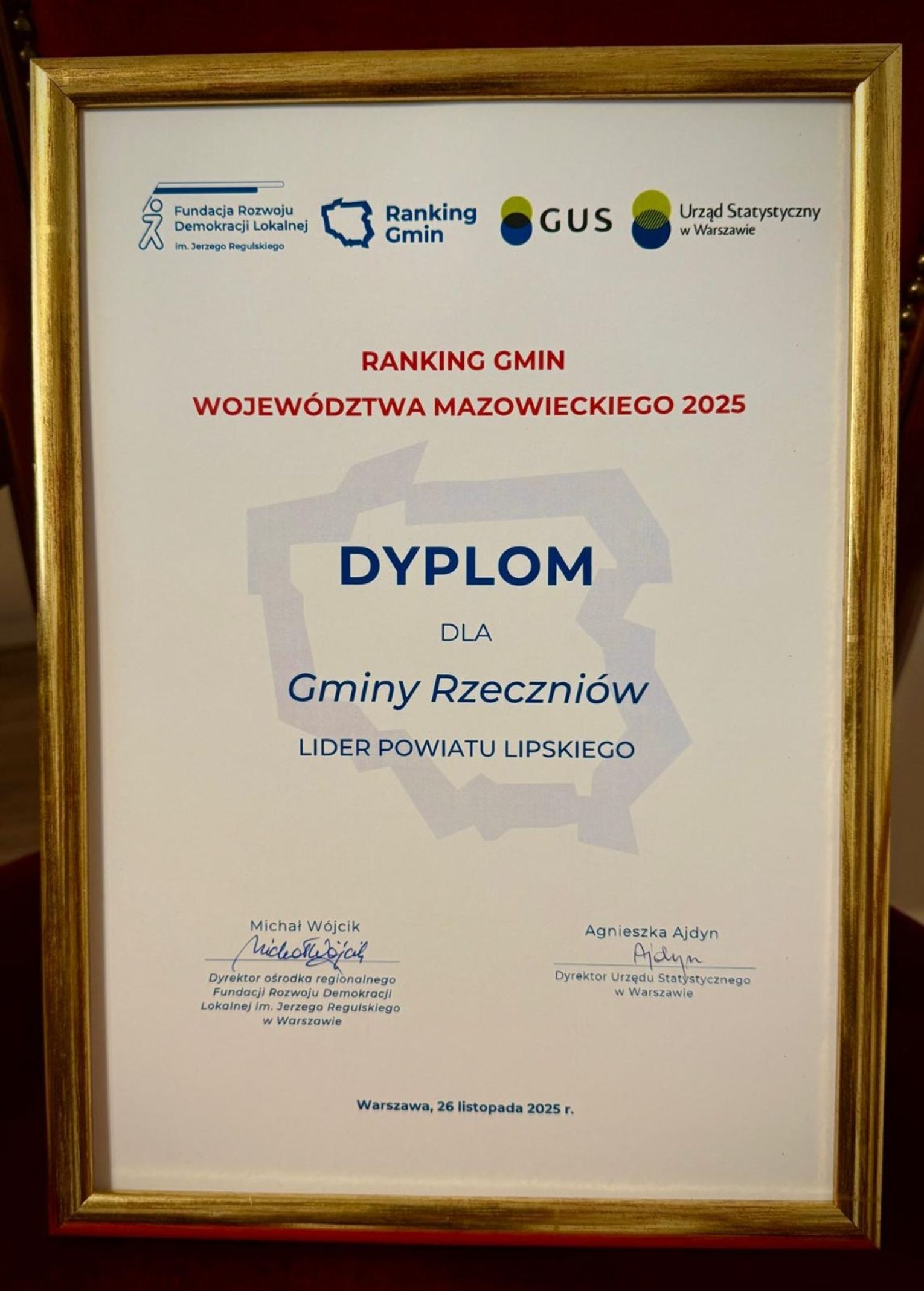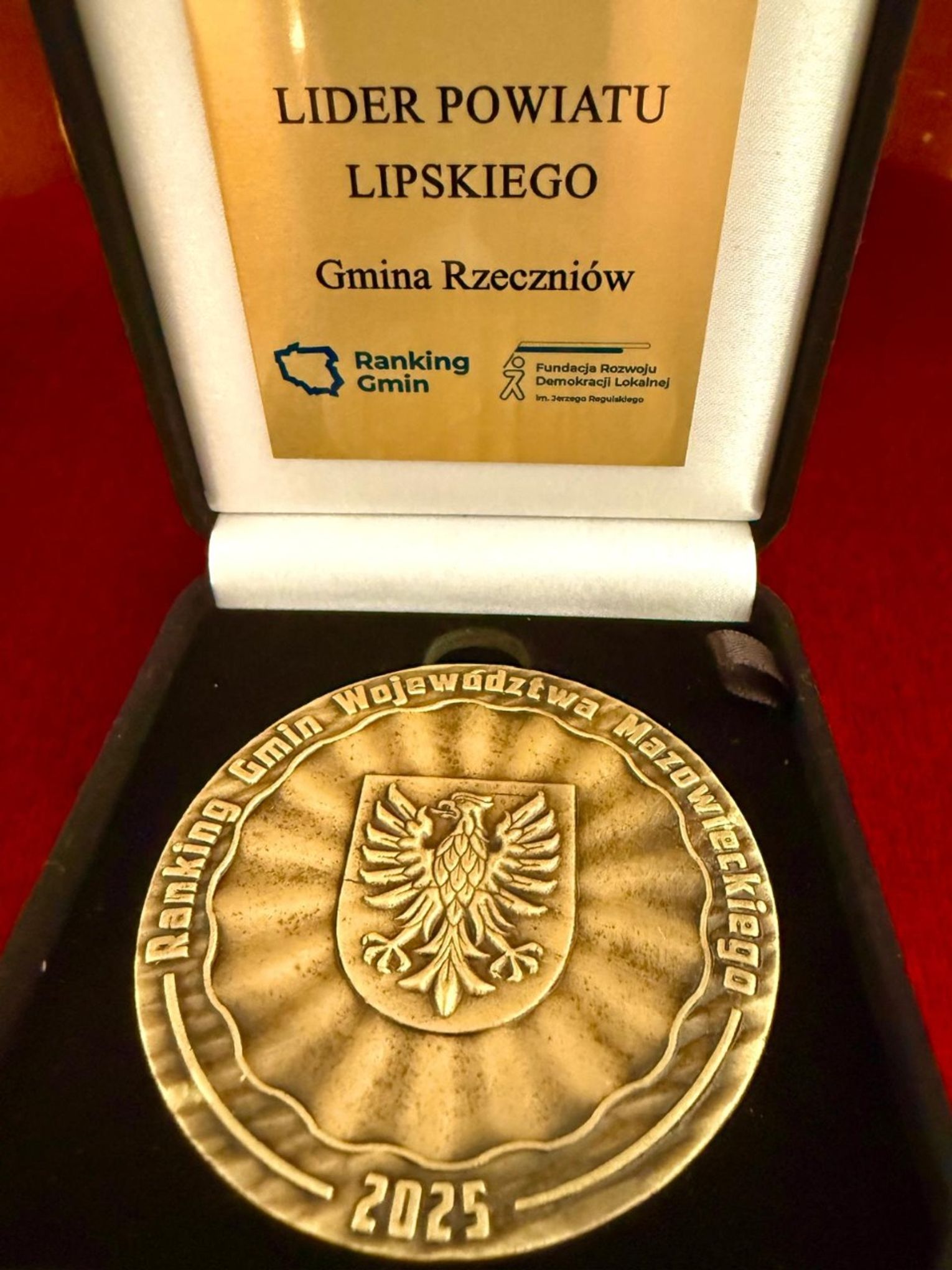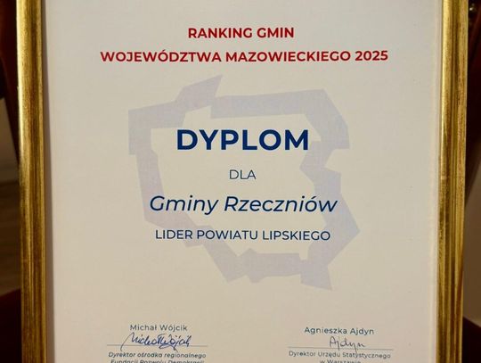 Fundacja Rozwoju Demokracji Lokalnej im. Jerzego Regulskiego – Centrum Mazowsze, wyróżniła Gminę Rzeczniów jako lidera powiatu lipskiego w V edycji Rankingu Gmin Województwa Mazowieckiego, organizowanego we współpracy z Głównym Urzędem Statystycznym w Warszawie.