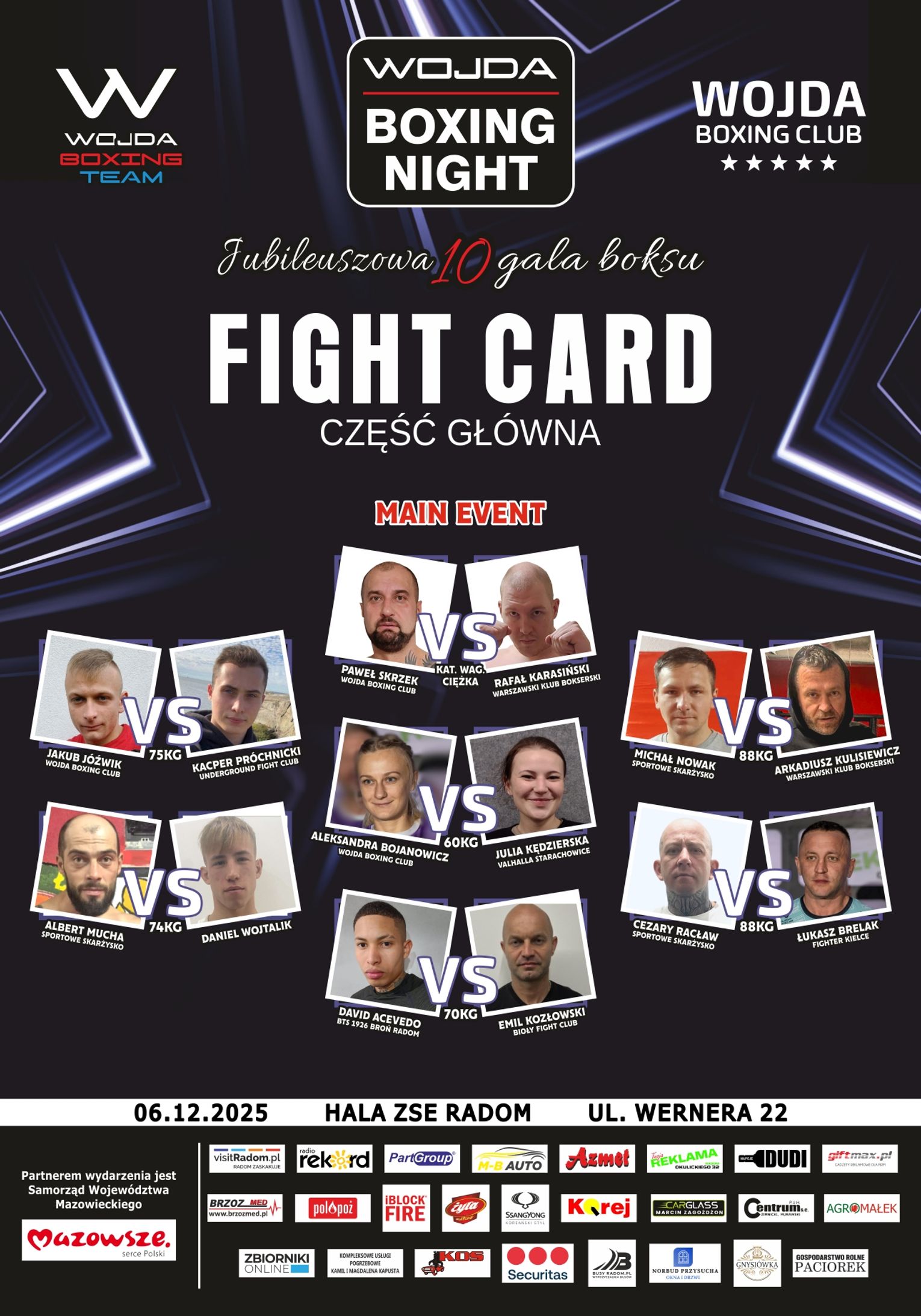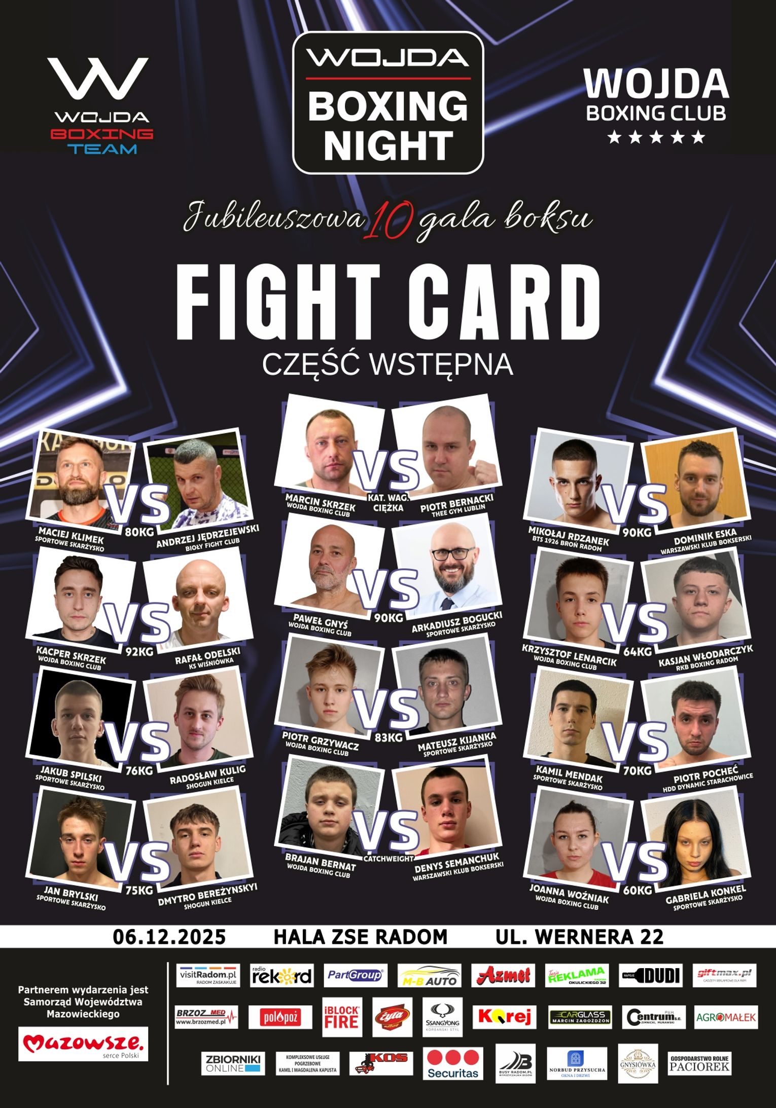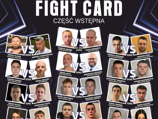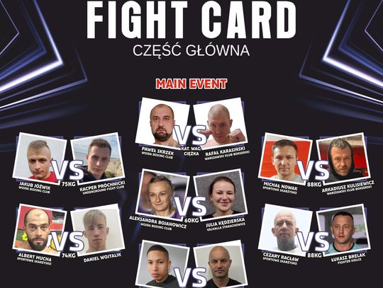 Pierwszą część zamknie pojedynek Marcina Skrzeka z Piotrem Bernackim z Lublina. W walce wieczoru brat Marcina, Paweł, spotka się z Rafałem Karasińskim z Warszawy. W karcie walk znalazły się również starcia kobiet.