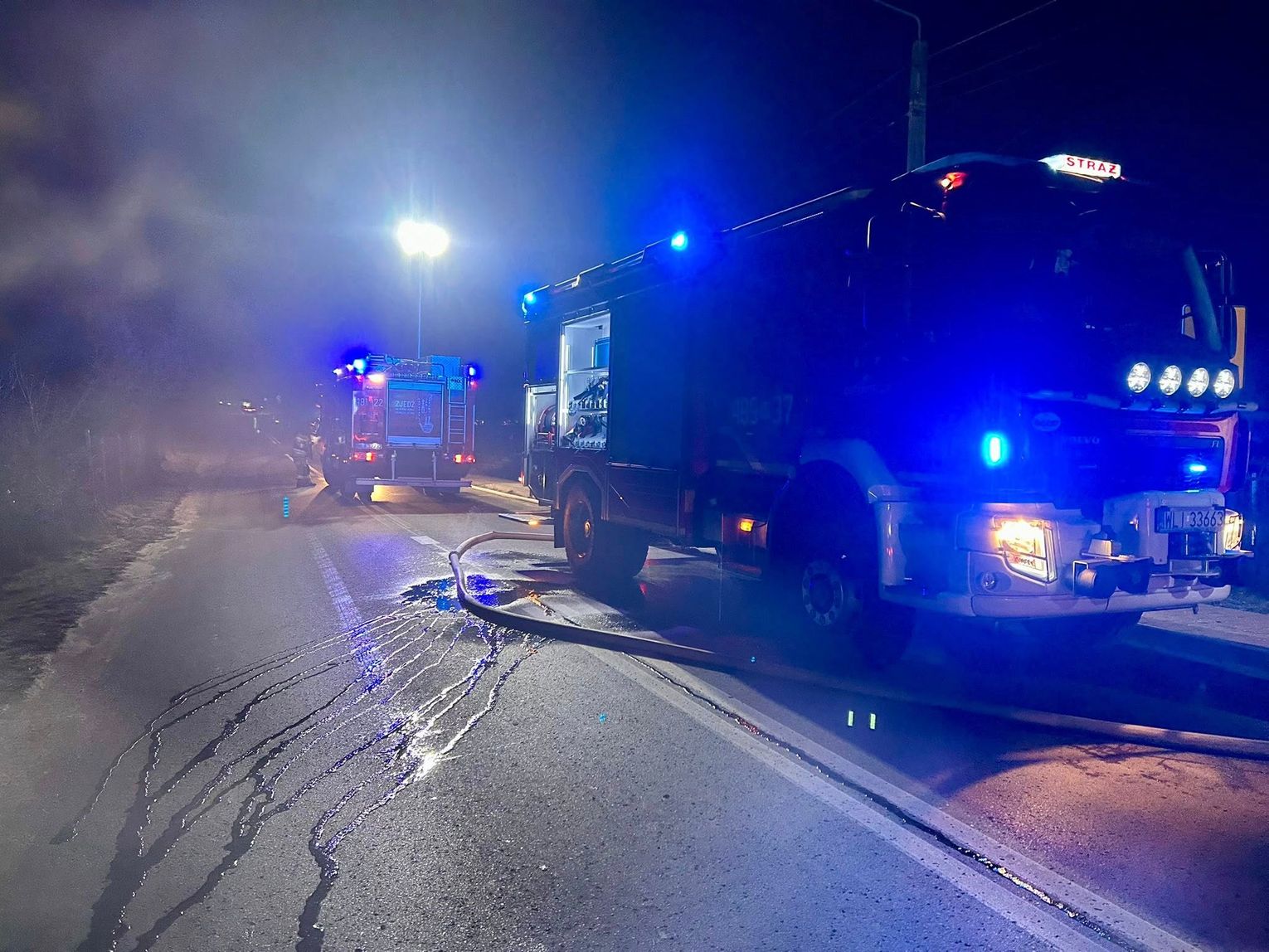 Informacja o pożarze wpłynęła do służb około godz. 00:30. Po przybyciu na miejsce zdarzenia zastępy zabezpieczyły teren działań i przeprowadziły rozpoznanie.