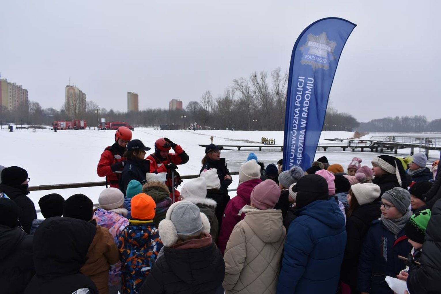 Głównymi adresatami zajęć byli uczniowie klas trzecich z Publicznej Szkoły Podstawowej nr 2 w Radomiu. Miejscowi policjanci oraz ratownicy radomskiego Wodnego Ochotniczego Pogotowia Ratunkowego wspólnie tłumaczyli dzieciom, jak odpowiedzialnie korzystać z uroków zimy.