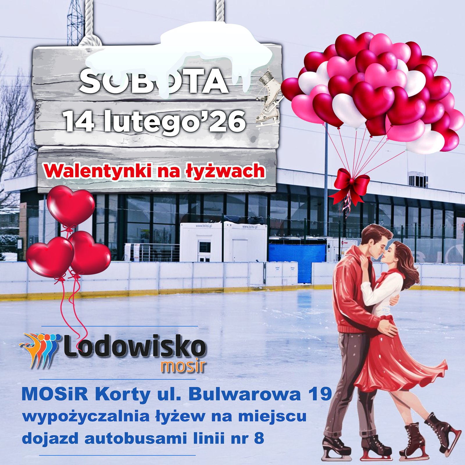 - Zapraszamy Was w sobotę 14 lutego na walentynkowe klimaty. Lodowisko będzie czynne w godz. 9.00-21.00 (przerwa techniczna 14.00-15.00). Ostatnie wejścia o godz. 13.00 i 20.00 - zaznacza radomski Miejski Ośrodek Sportu i Rekreacji.