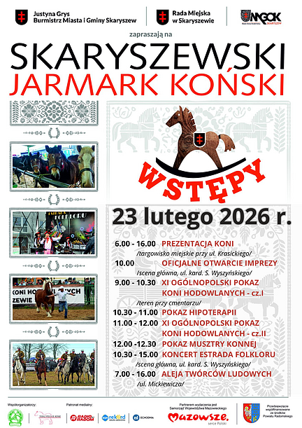 - Tegoroczny jarmark odbędzie się 23 lutego. Rejestracja koni już jest zakończona. Na liście zgłoszeń znajduje się 200 koni, co potwierdza duże zainteresowanie hodowców i miłośników tych pięknych tradycji z całej Polski - mówi Justyna Grys, burmistrz Skaryszewa.