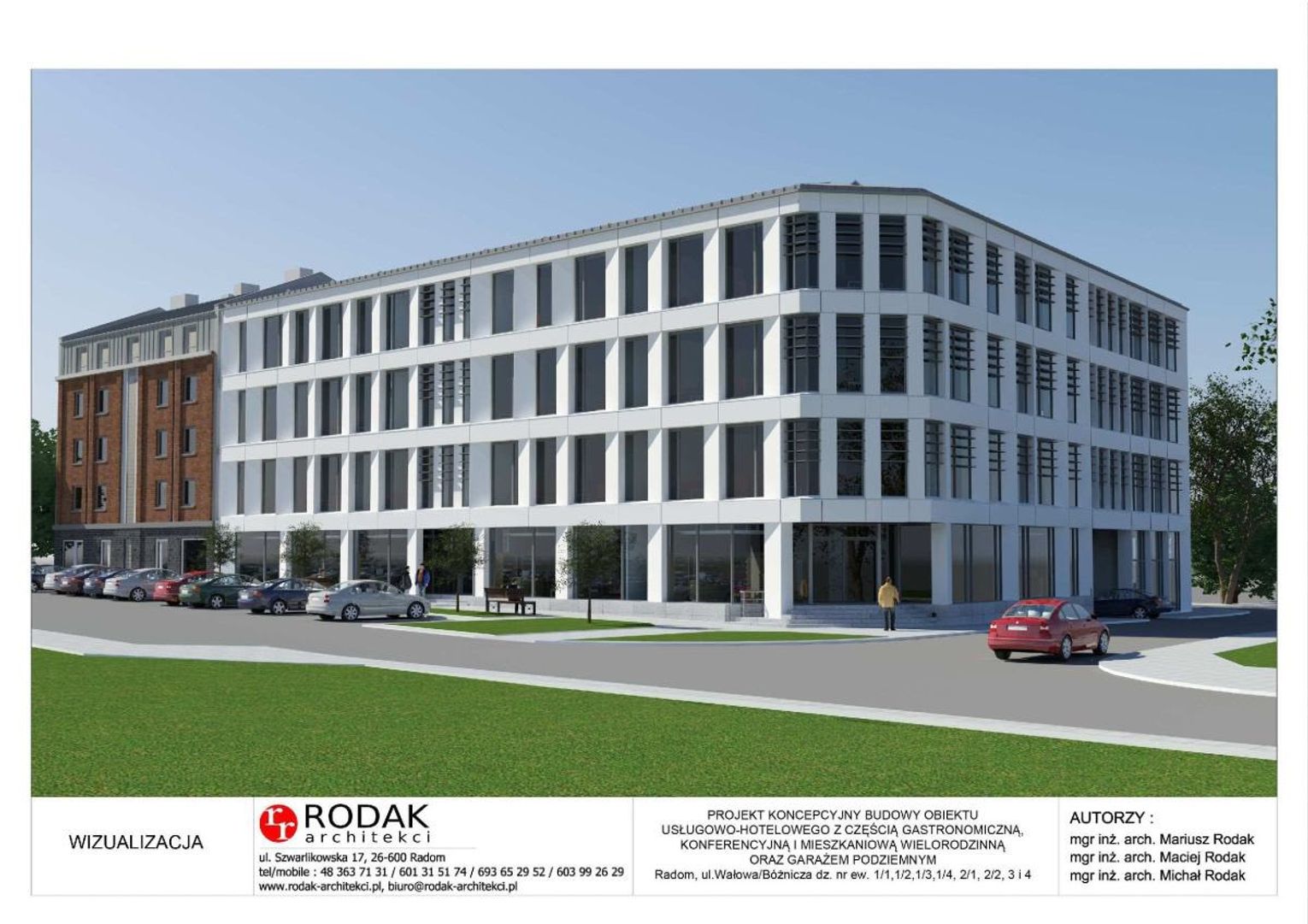 Autorem koncepcji jest radomskie biuro RODAKarchitekci. Projektanci podkreślają, że inwestycja ma nie tylko uporządkować przestrzeń w sąsiedztwie Bramy Krakowskiej, ale także nadać jej nową, prestiżową funkcję.