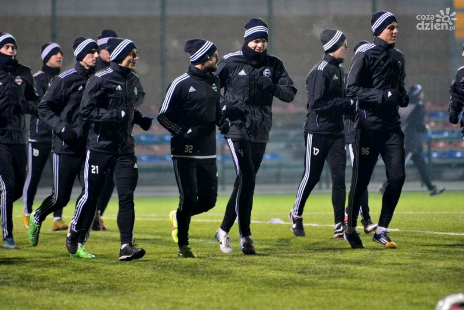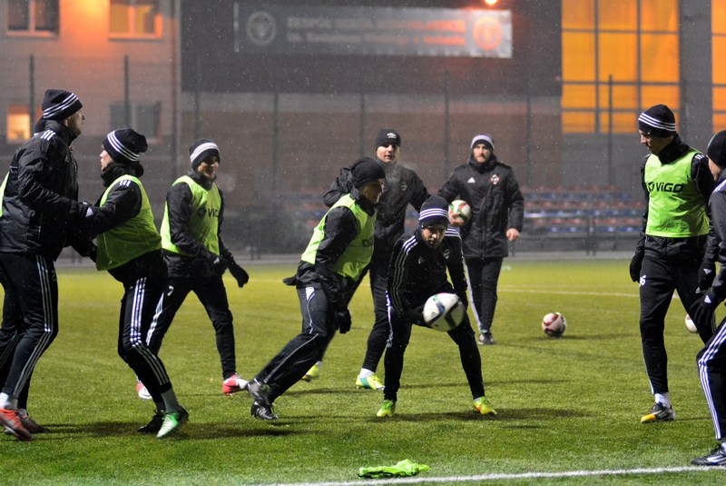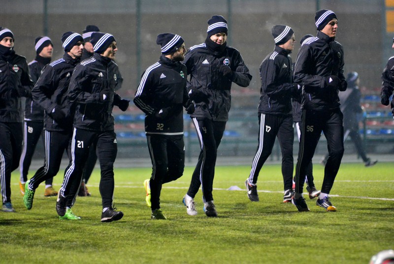 Pomimo kilkustopniowego mrozu i opadów śniegu, Zieloni wznowili treningi zgodnie z planem. Wśród zawodników z różnych powodów zabrakło Leandro Rossiego, Chinonso Agu, Karola Kucharskiego oraz Przemysława Śliwińskiego. Obecni byli natomiast trzej nowo zakontraktowani piłkarze - Radosław Mikołajczak, Kamil Cupriak i Adrian Szady.