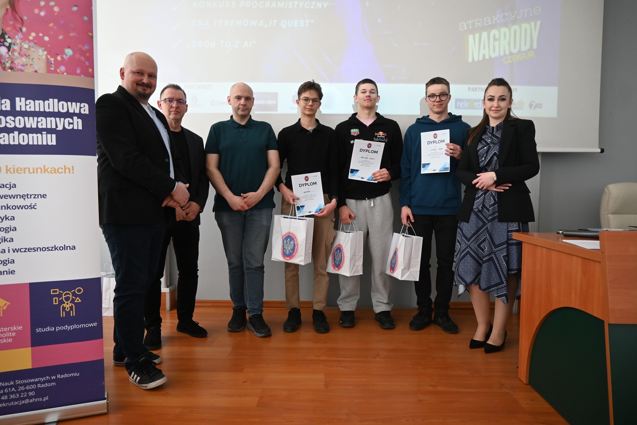 Dzień I skierowany był do uczniów szkół ponadpodstawowych i obfitował w inspirujące prelekcje o AI, cyberbezpieczeństwie i karierze w IT. Uczestnicy mogli także sprawdzić swoje umiejętności w konkursie „Programuj z AHNS”, wziąć udział w grze terenowej „IT Quest” oraz warsztatach z wykorzystania sztucznej inteligencji.
