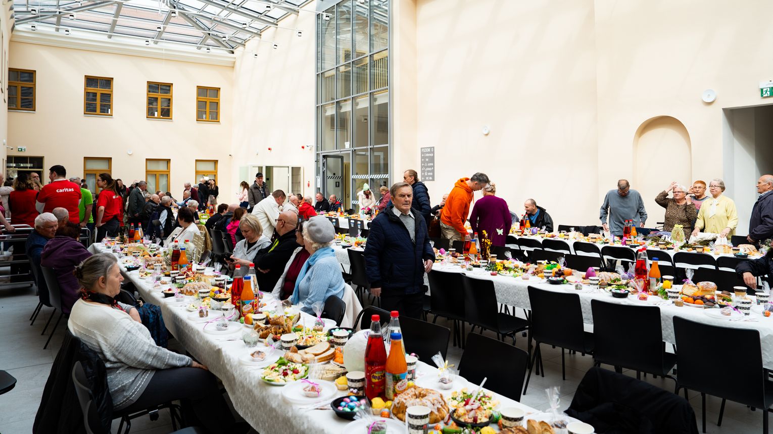 Spotkanie rozpoczęło się od od modlitwy, poświęcenia pokarmów i podzielenia się jajkiem. W przygotowaniu wydarzenia wzięli udział również wolontariusze, którzy swoim wsparciem i obecnością pokazali, że los osób samotnych nie jest im obojętny. Dla uczestników spotkania zostały przygotowane świąteczne potrawy oraz paczki z produktami spożywczymi.