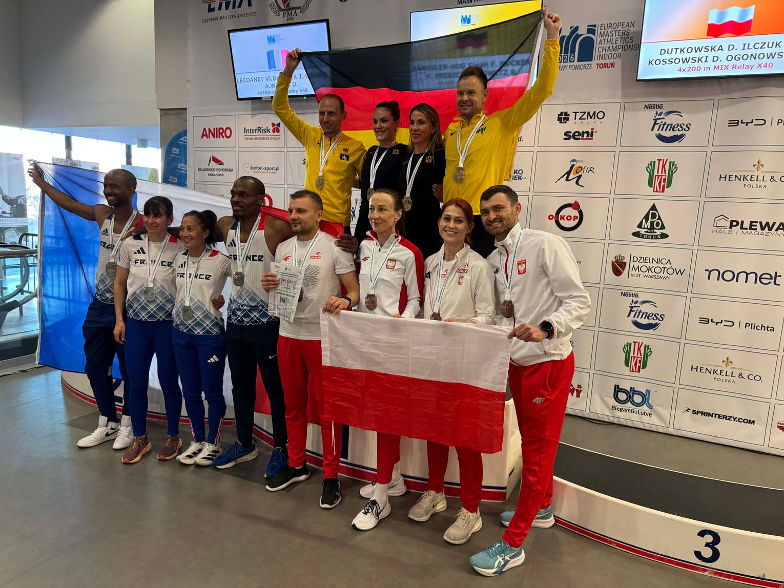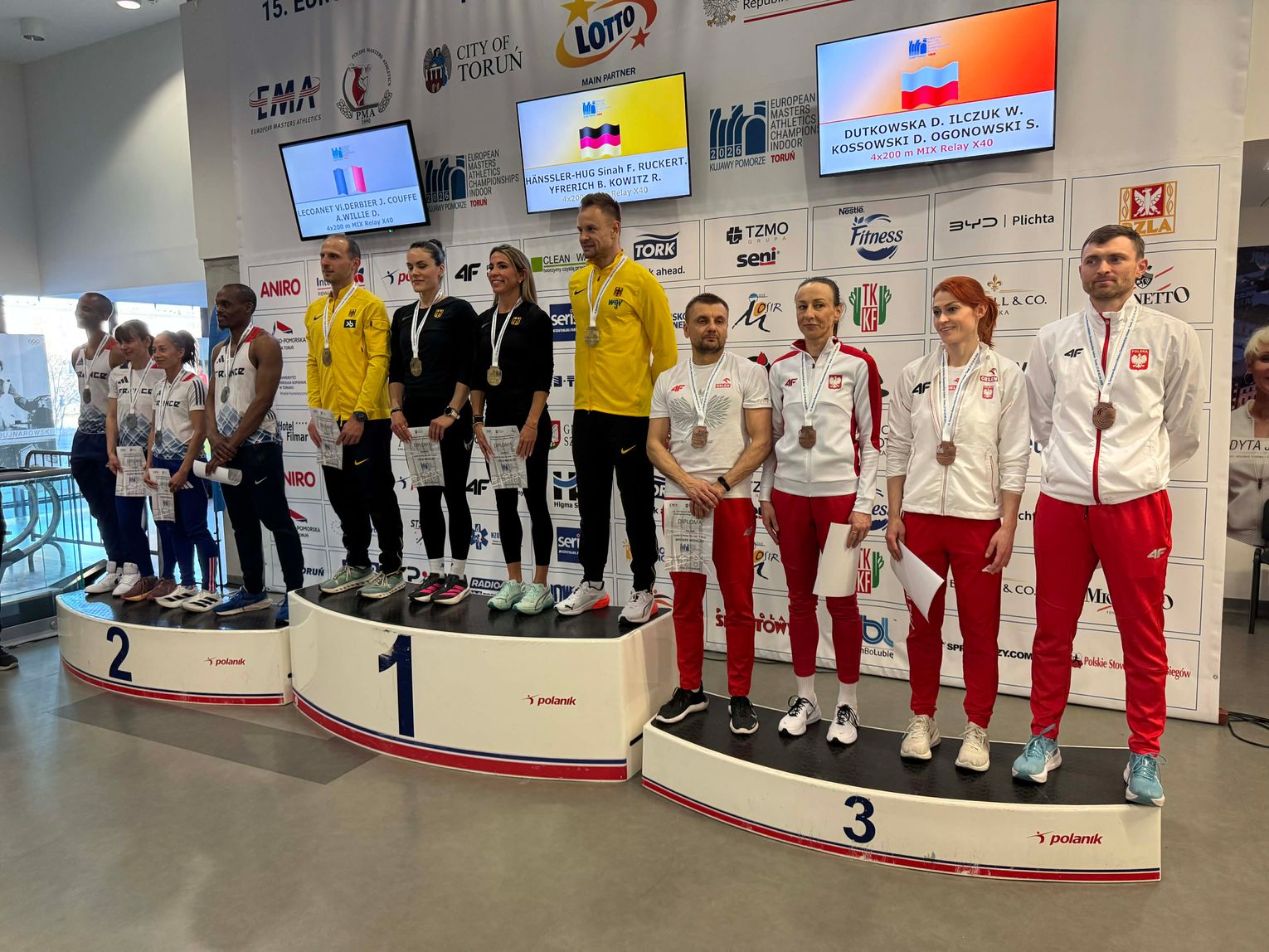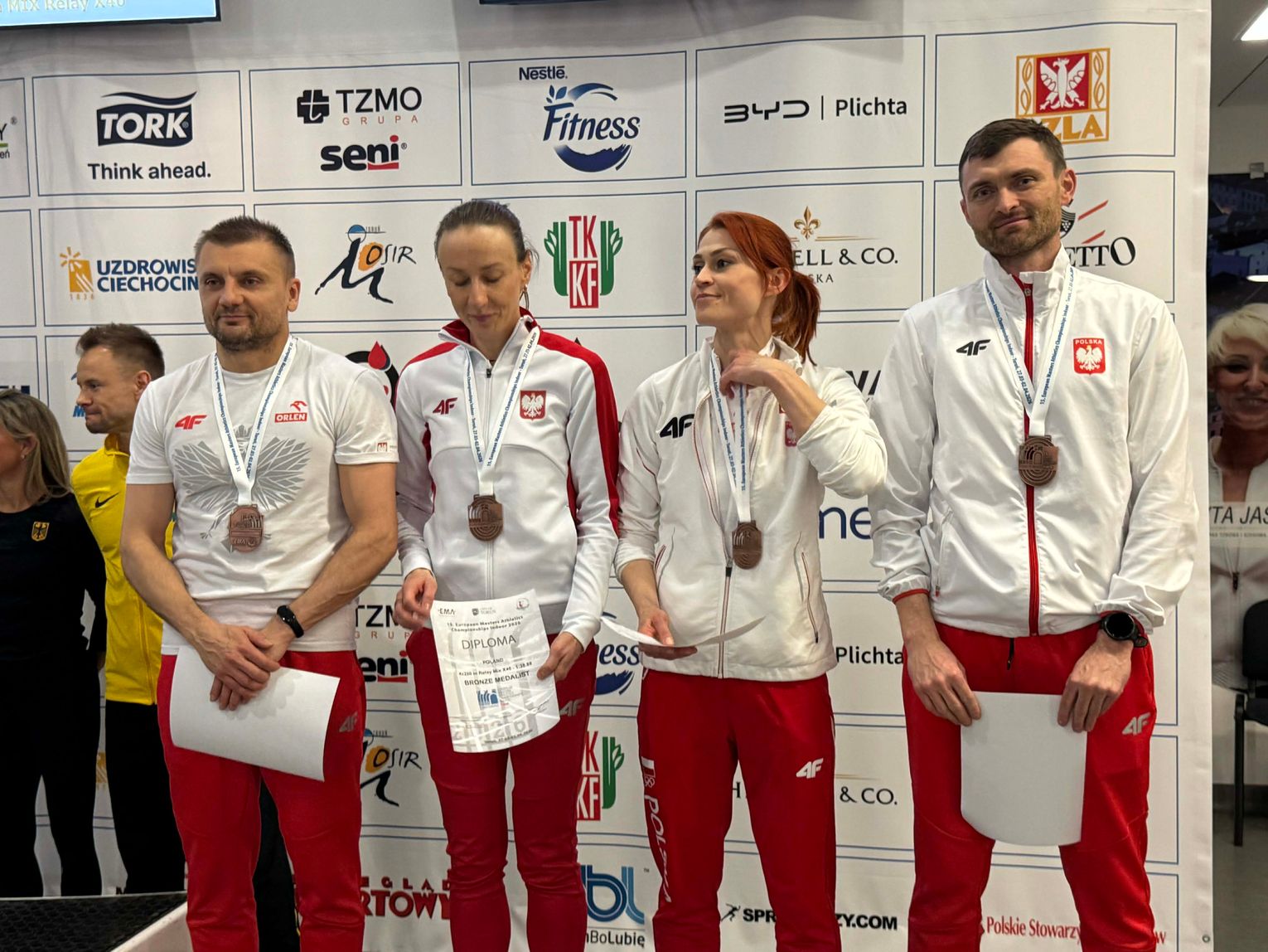 Największy sukces przyszedł jednak w rywalizacji drużynowej. Sztafeta mieszana 4x200 metrów w składzie: Dorota Dutkowska (Toruń), Weronika Ilczuk (Warszawa), Daniel Kossowski (Radom) i Szymon Ogonowski (Warszawa) wywalczyła brązowy medal. Czas 1:38.88 oznacza jednocześnie nowy halowy rekord Polski.