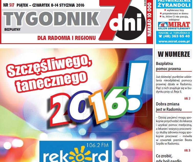 A zaczynamy od wizyty Premier Szydło. Piszemy też o inwestycjach z minionego roku i planujemy ten, który właśnie się zaczął. Radzimy jak walczyć z bólem gardła i, jak zawsze, proponujemy program tv na cały tydzień.