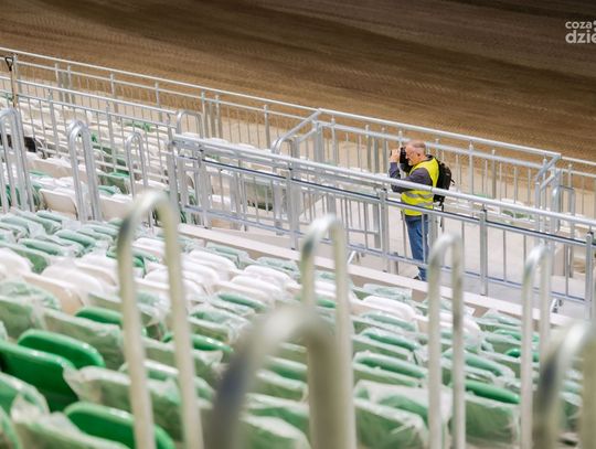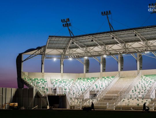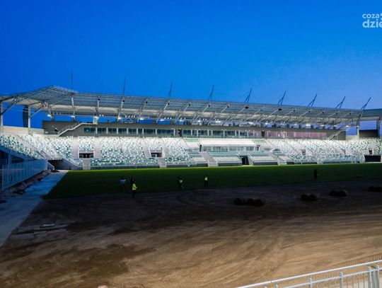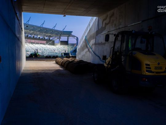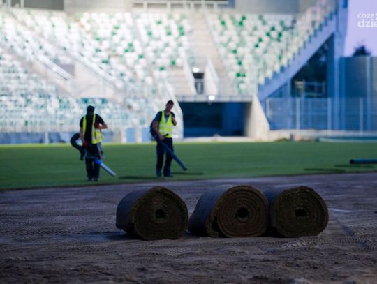 Stadion Radomiaka nocą - układanie murawy (zdjęcia)