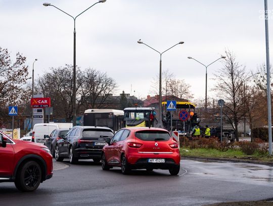Utrudnienia w ruchu przy rondzie Dmowskiego (zdjęcia)
