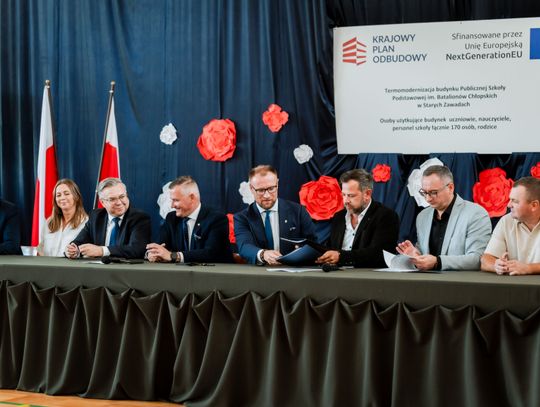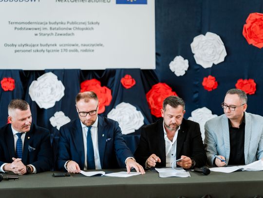 Podpisanie umowy na termomodernizację szkoły w Starych Zawad...