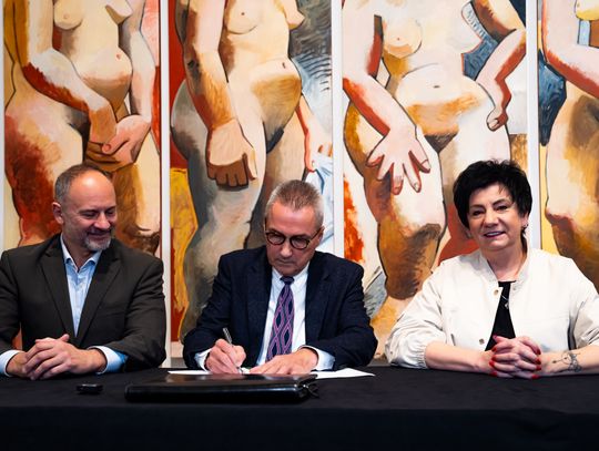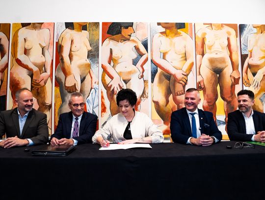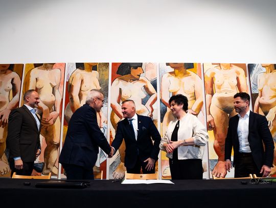 Konferencja prasowa dot. przekazania 7 obrazów Wojciecha Fangora dla MCSW Elektrownia (zdjęcia)